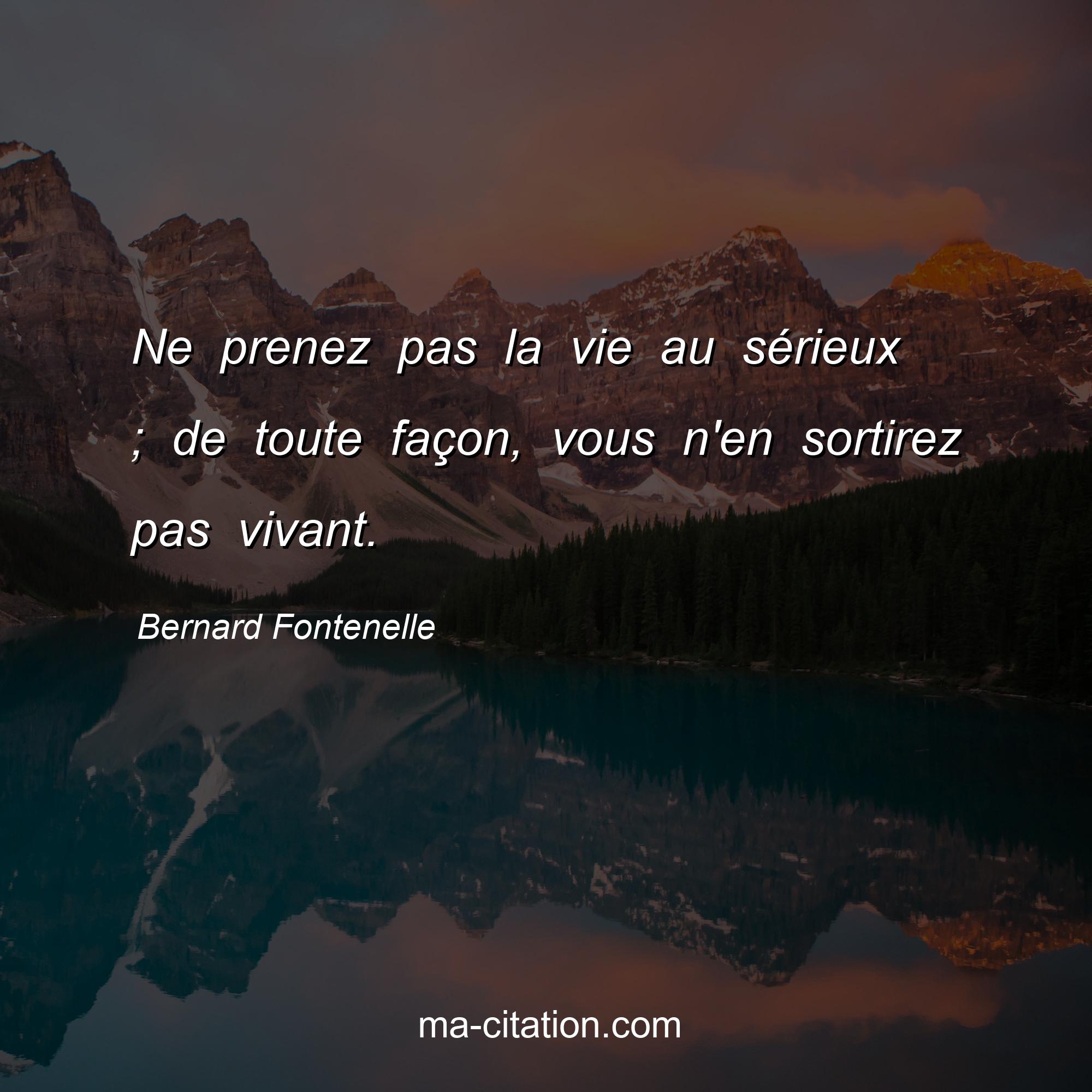 Citation sur la vie de Bernard Fontenelle :Ne prenez pas la vie au sérieux ; de toute façon, vous n'en sortirez pas vivant.