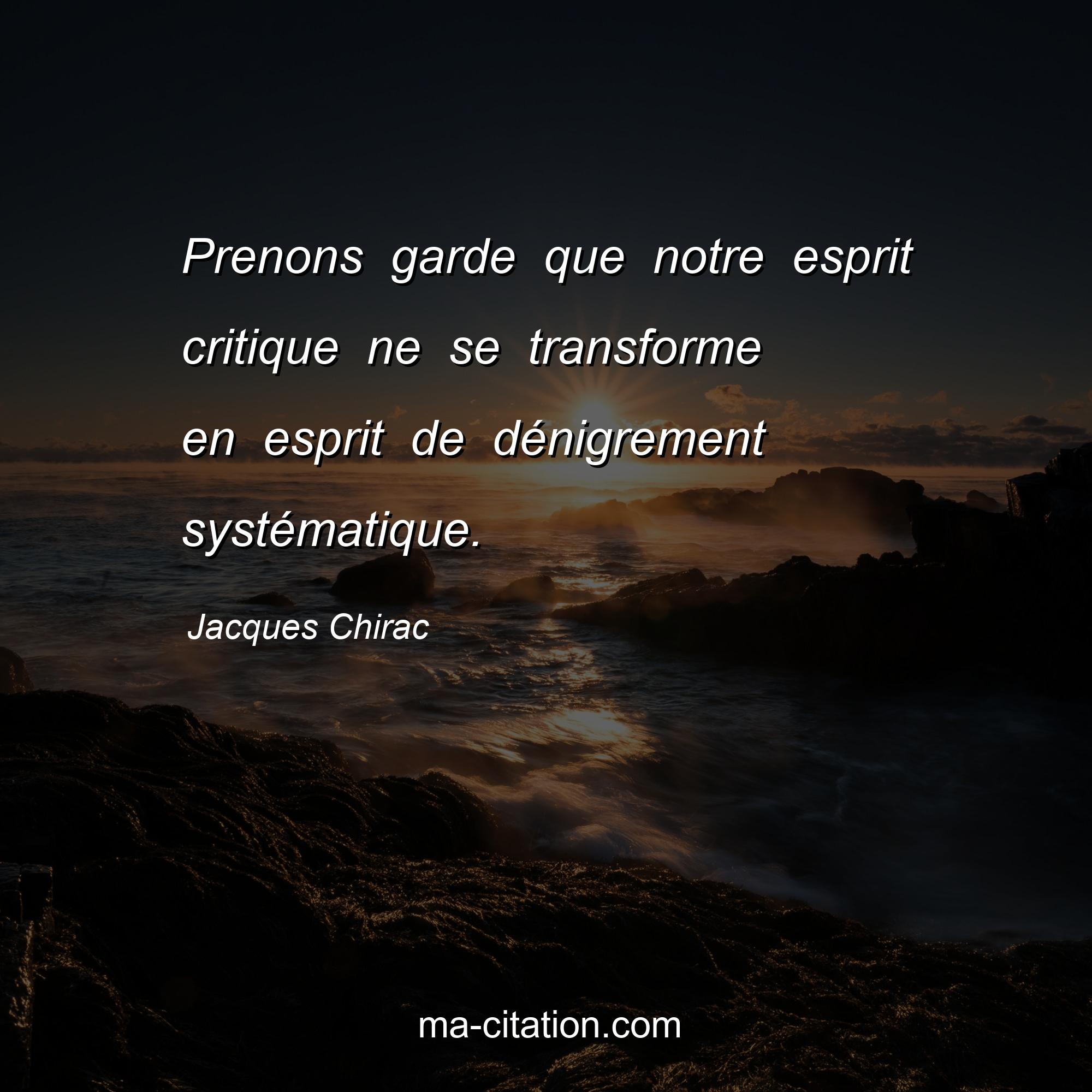 Citation sur la vie de Jacques Chirac :Prenons garde que notre esprit critique ne se transforme en esprit de dénigrement systématique.