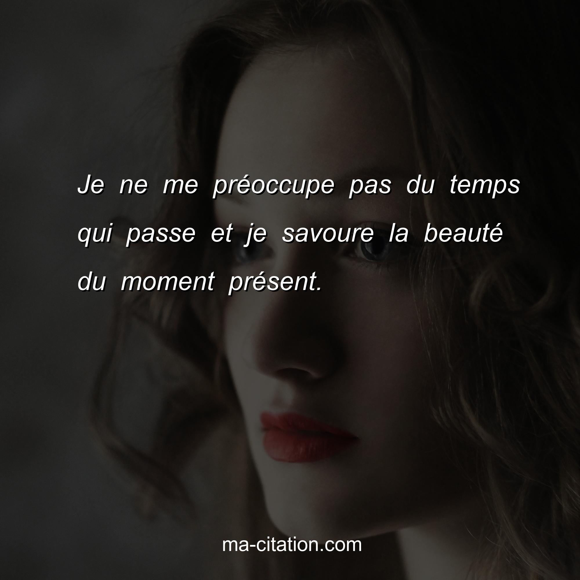 Citation sur la vie :Je ne me préoccupe pas du temps qui passe et je savoure la beauté du moment présent.