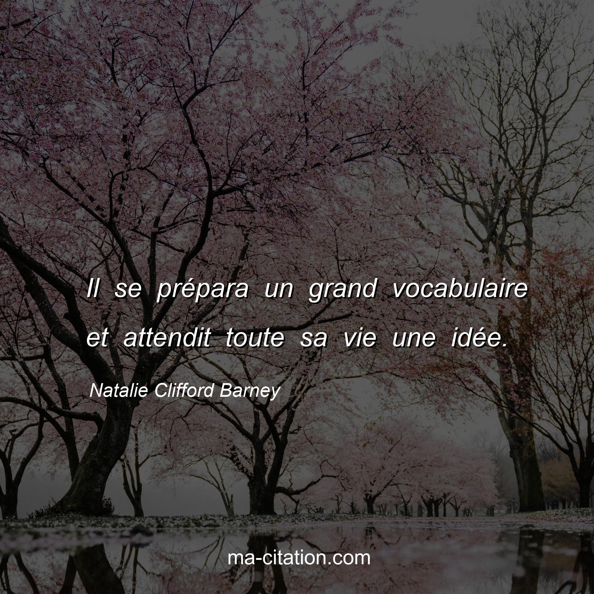 Citation sur la vie de Natalie Clifford Barney :Il se prépara un grand vocabulaire et attendit toute sa vie une idée.