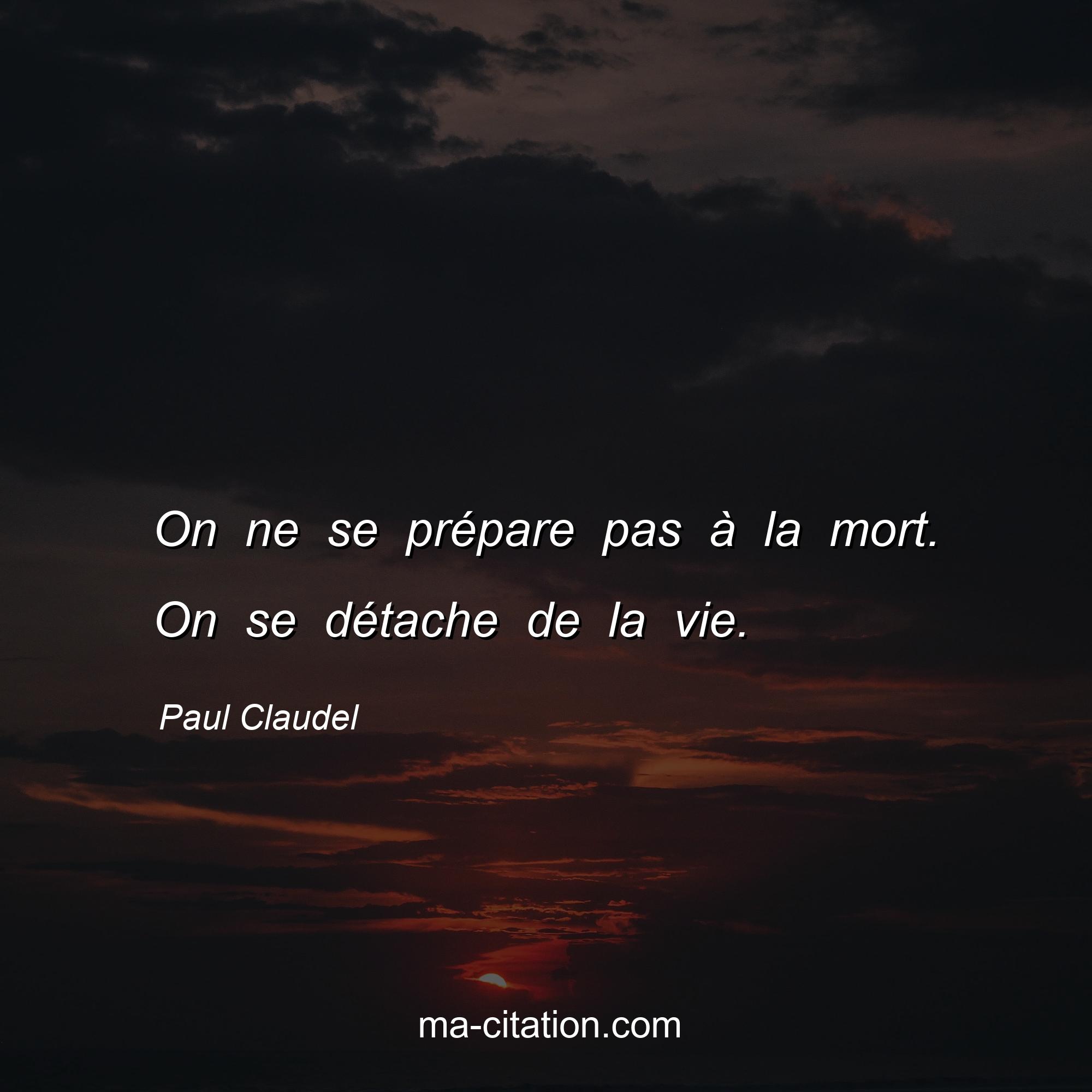 Citation sur la vie de Paul Claudel :On ne se prépare pas à la mort. On se détache de la vie.