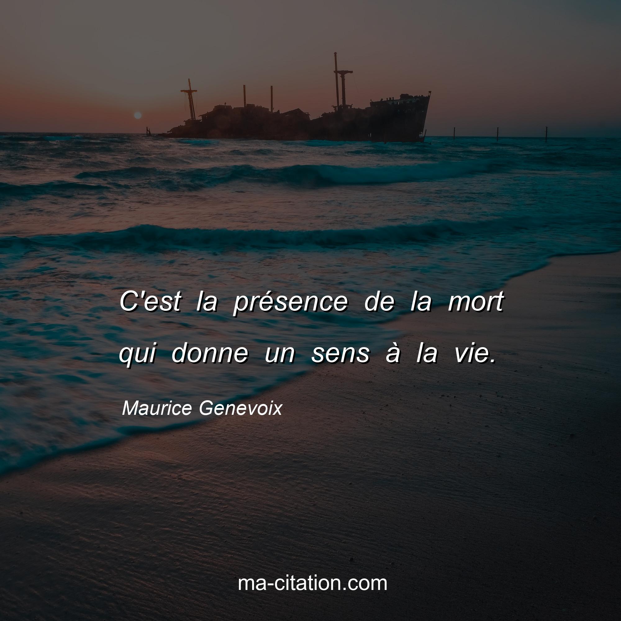 Citation sur la vie de Maurice Genevoix :C'est la présence de la mort qui donne un sens à la vie.
