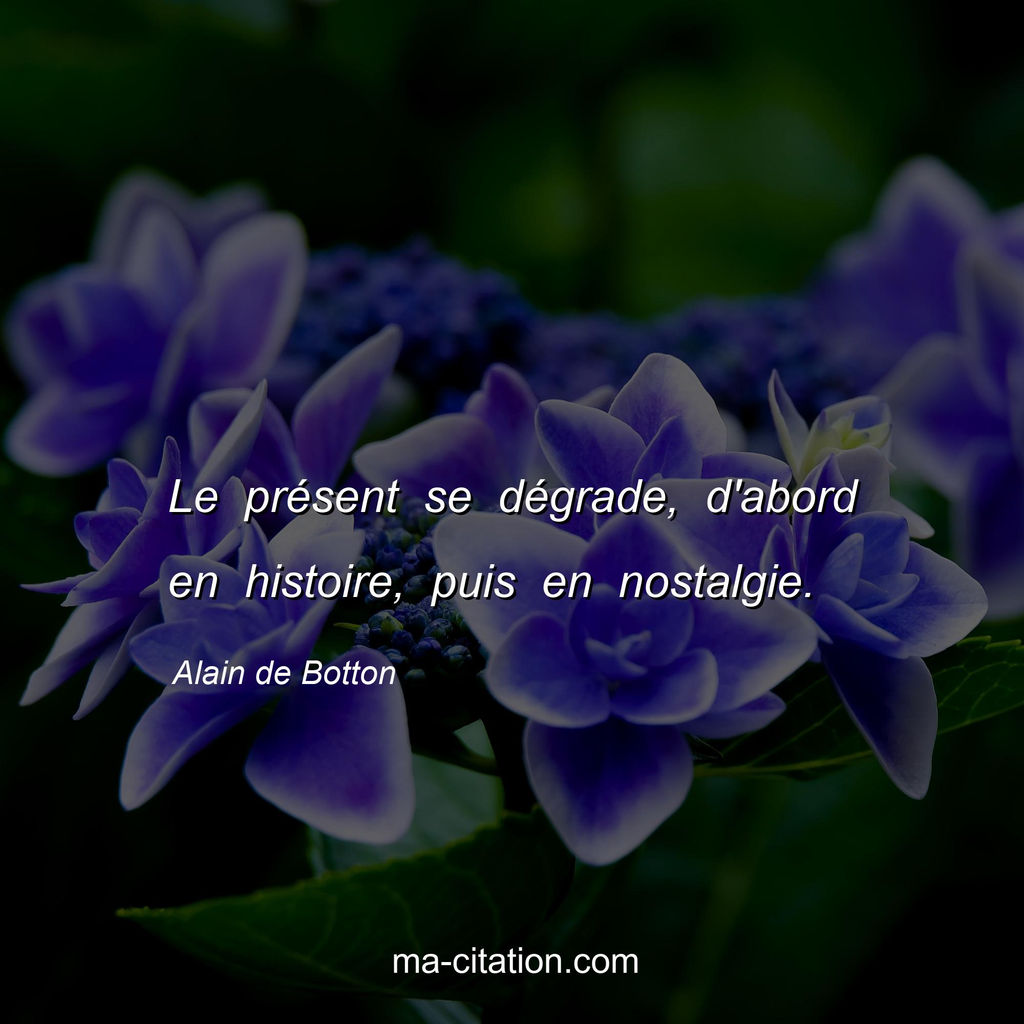 Citation sur la vie d'Alain de Botton :Le présent se dégrade, d'abord en histoire, puis en nostalgie.