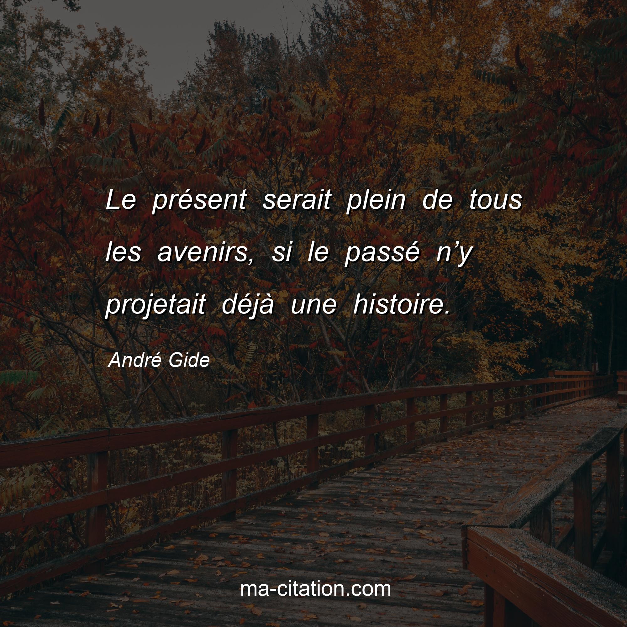 Citation sur la vie d'André Gide :Le présent serait plein de tous les avenirs, si le passé n’y projetait déjà une histoire.