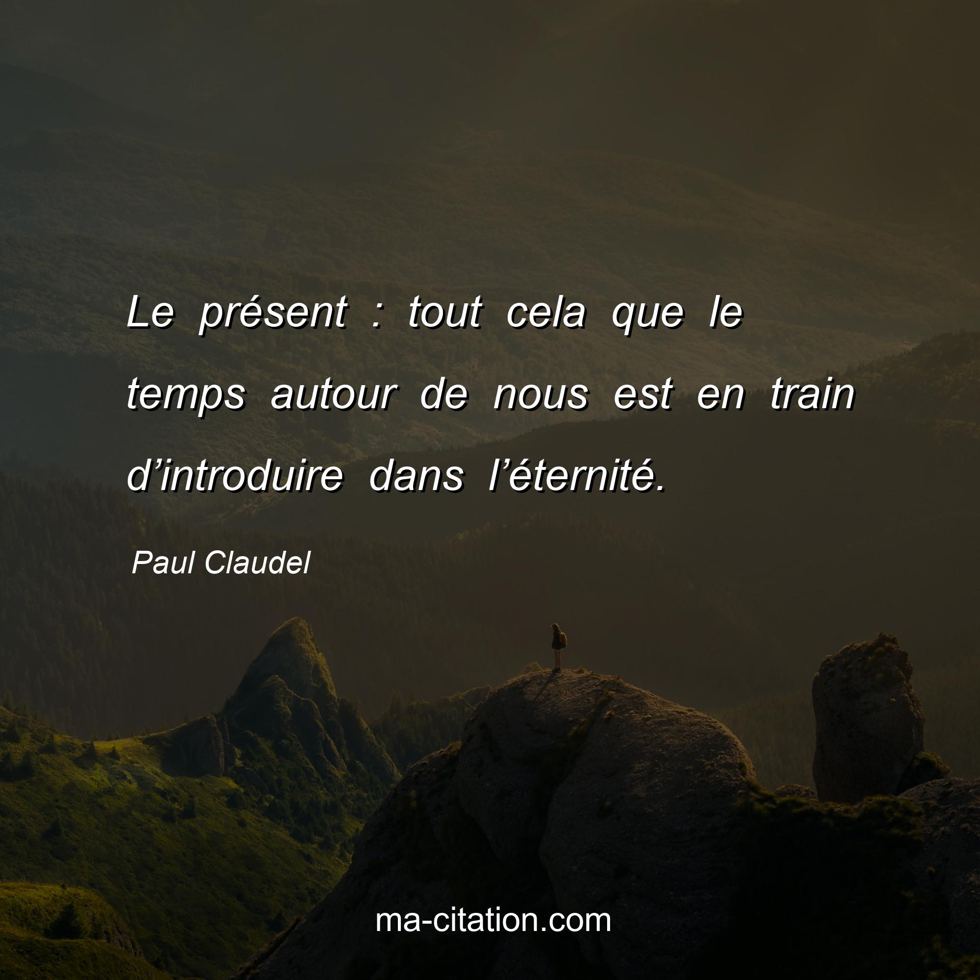 Citation sur la vie de Paul Claudel :Le présent : tout cela que le temps autour de nous est en train d’introduire dans l’éternité.