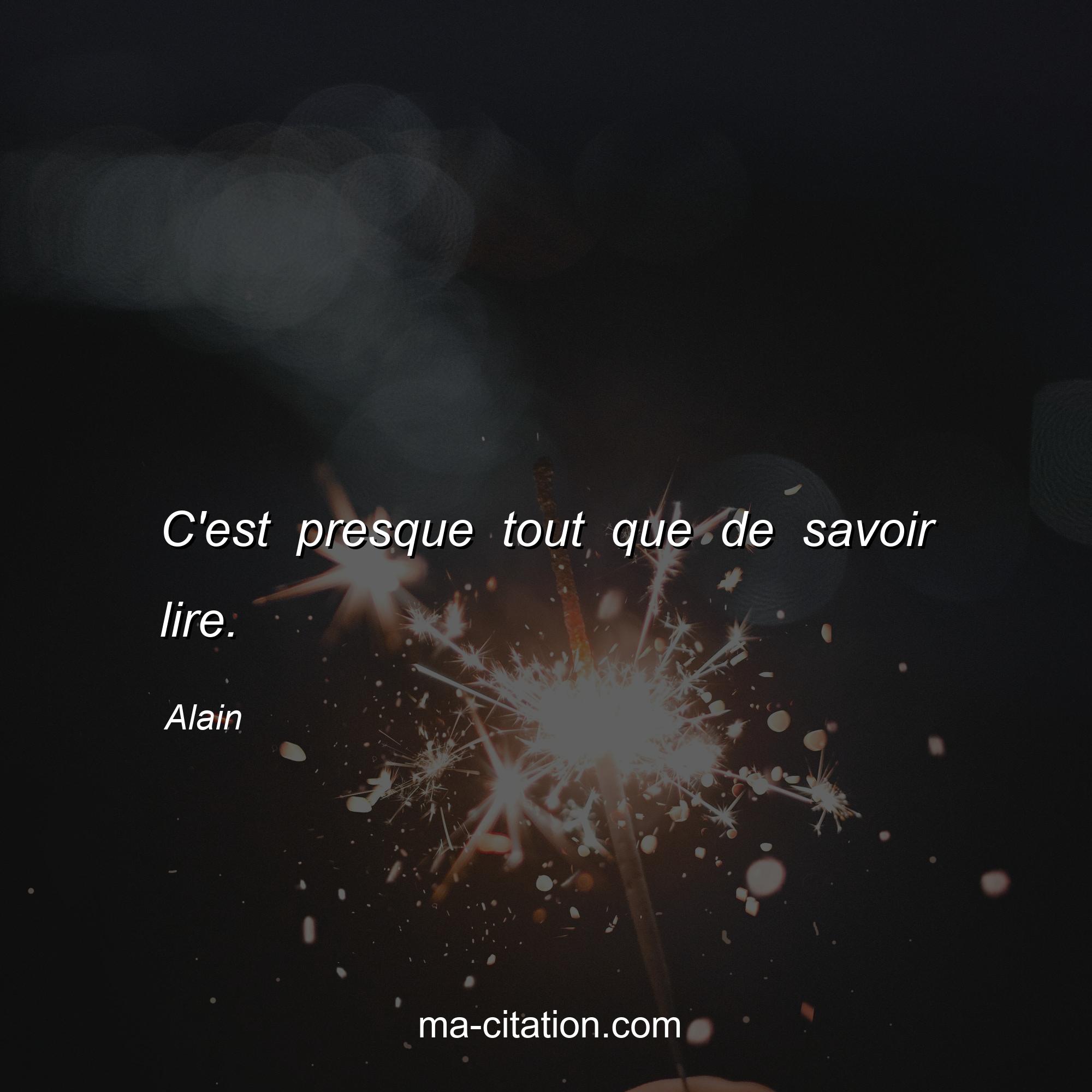 Citation sur la vie d'Alain :C'est presque tout que de savoir lire.