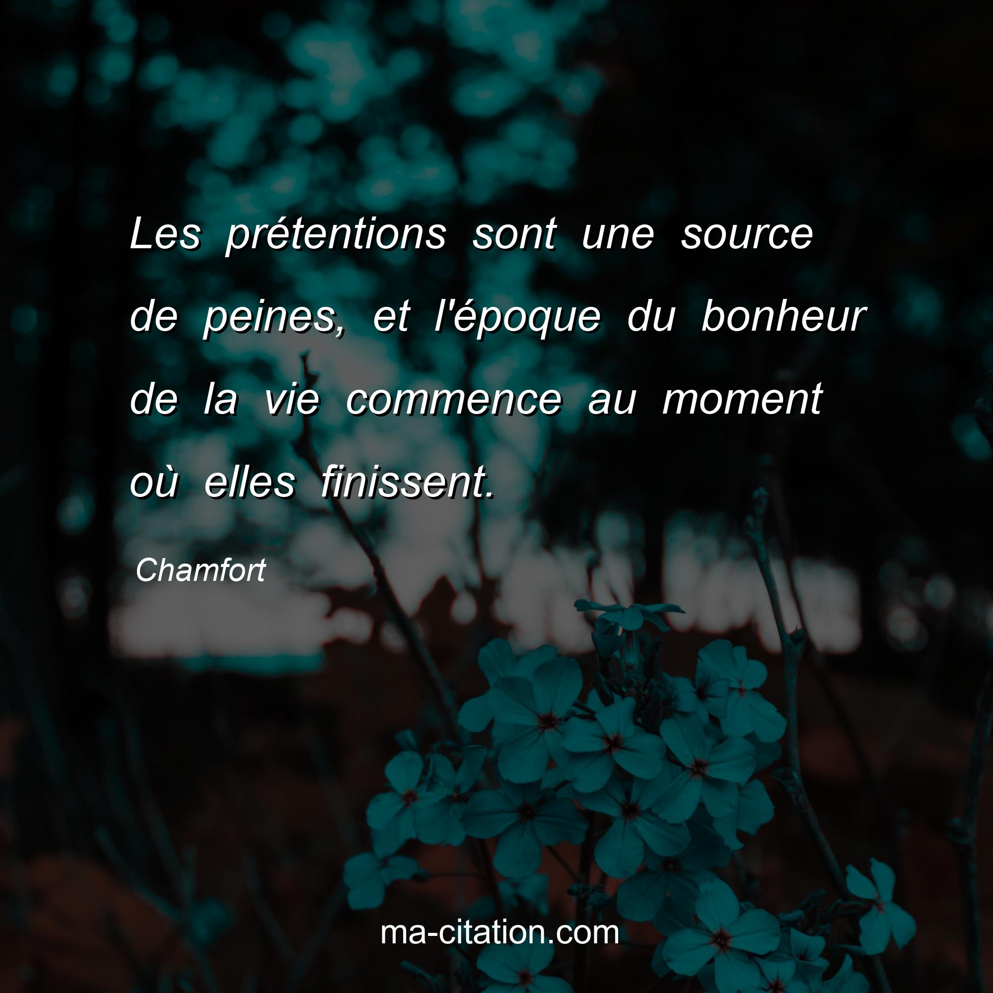 Citation sur la vie de Chamfort :Les prétentions sont une source de peines, et l'époque du bonheur de la vie commence au moment où elles finissent.