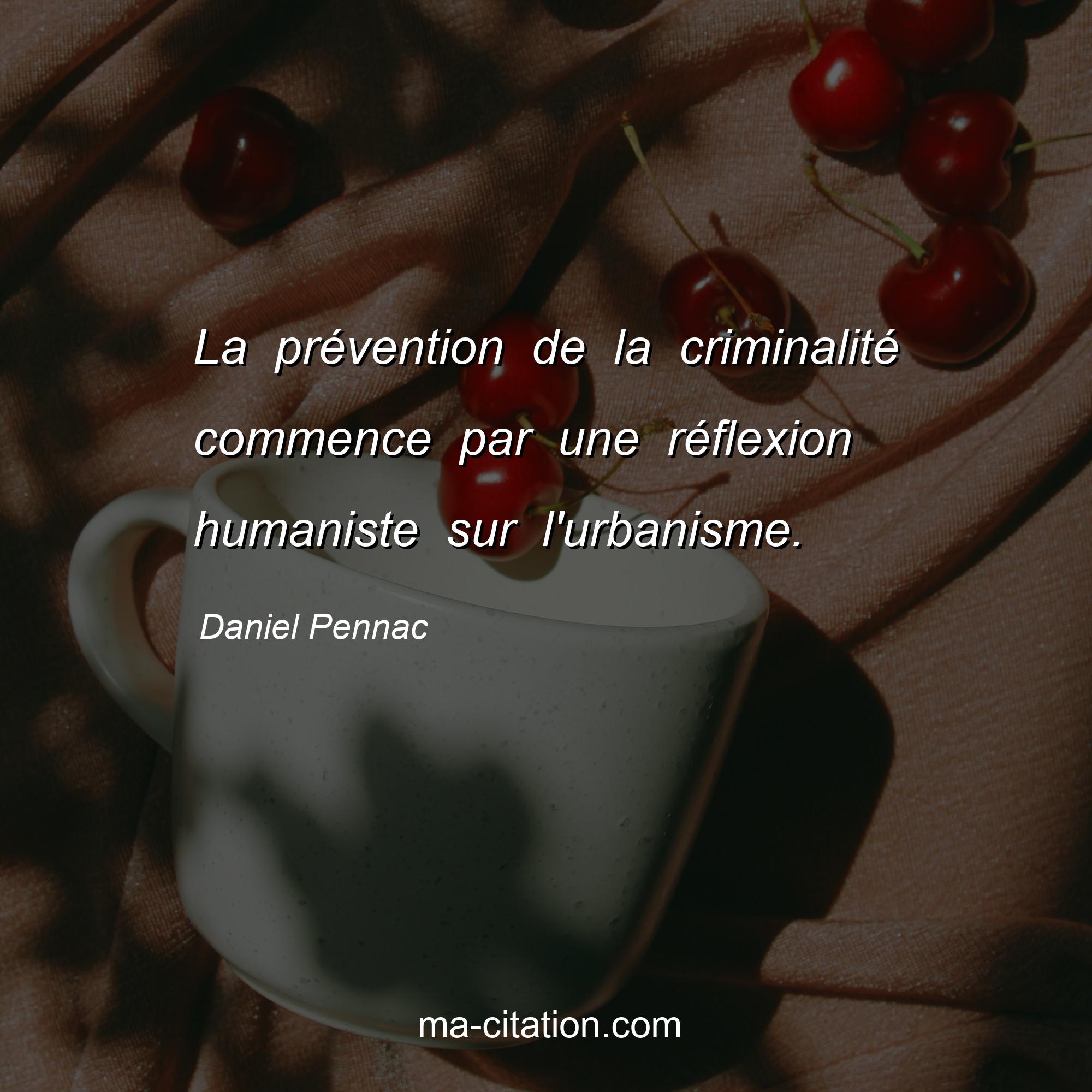 Citation sur la vie de Daniel Pennac :La prévention de la criminalité commence par une réflexion humaniste sur l'urbanisme.