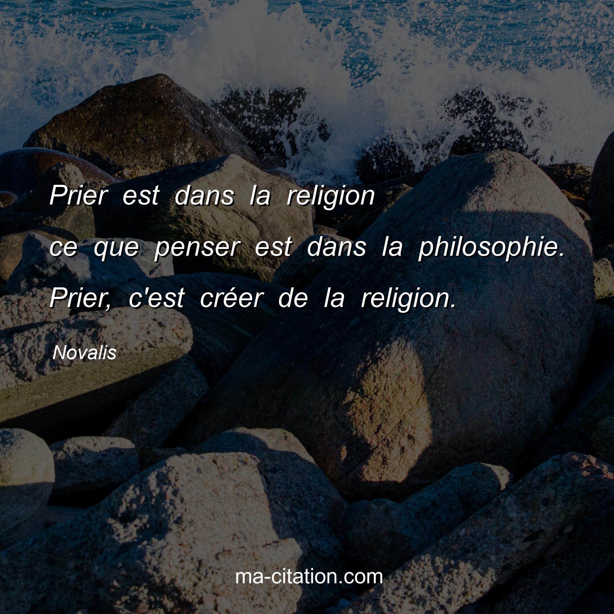 Citation sur la vie de Novalis :Prier est dans la religion ce que penser est dans la philosophie. Prier, c'est créer de la religion.