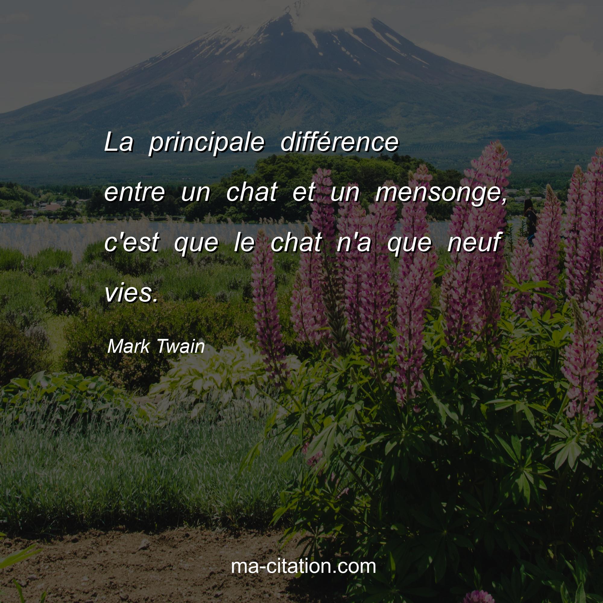 Citation sur la vie de Mark Twain :La principale différence entre un chat et un mensonge, c'est que le chat n'a que neuf vies.