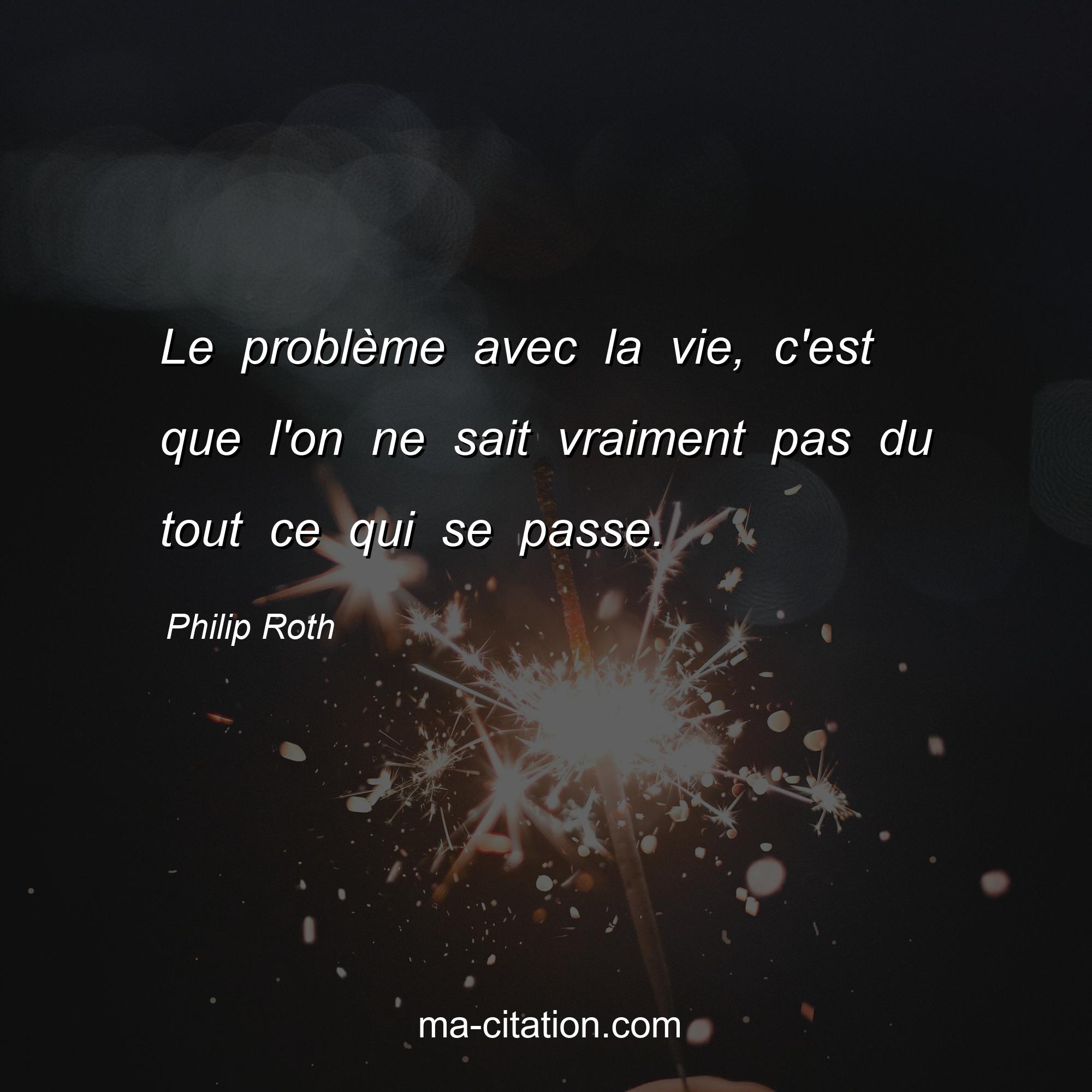 Citation sur la vie de Philip Roth :Le problème avec la vie, c'est que l'on ne sait vraiment pas du tout ce qui se passe.
