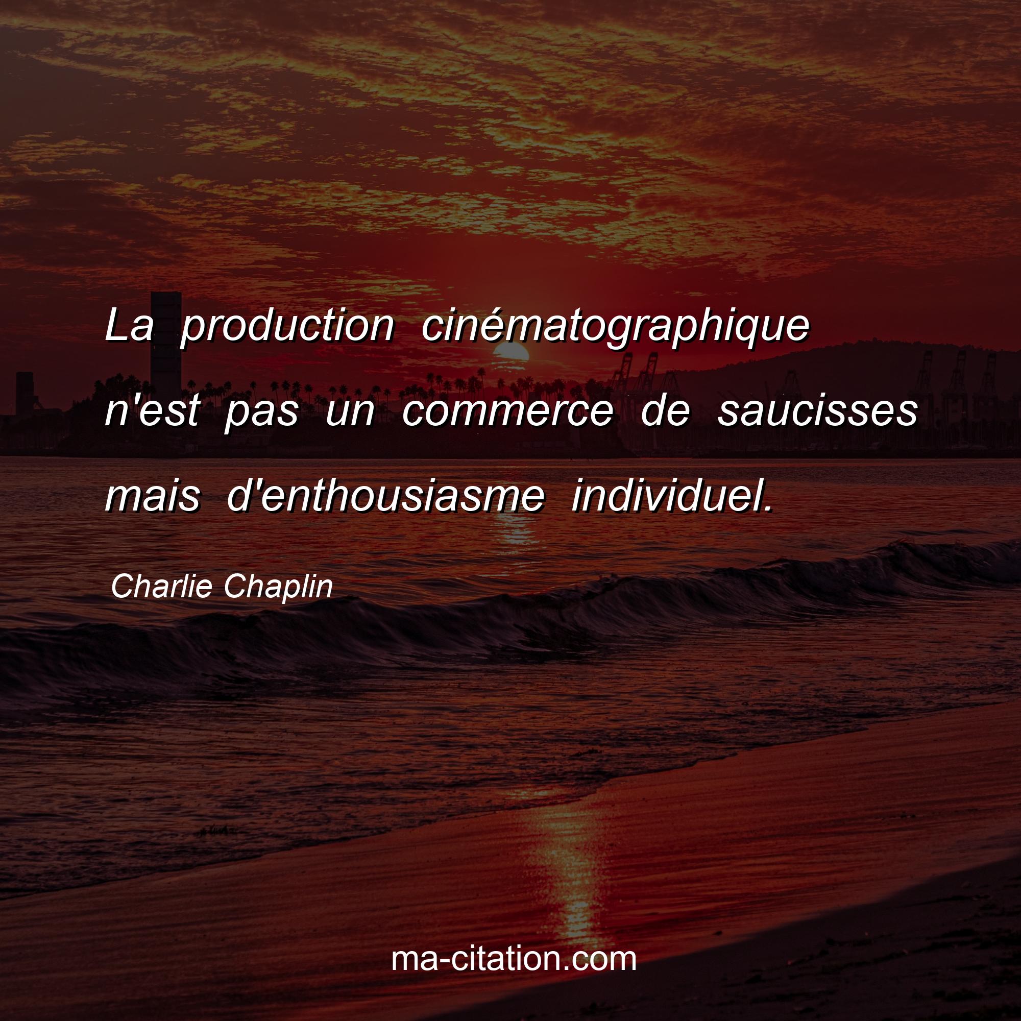 Citation sur la vie de Charlie Chaplin :La production cinématographique n'est pas un commerce de saucisses mais d'enthousiasme individuel.