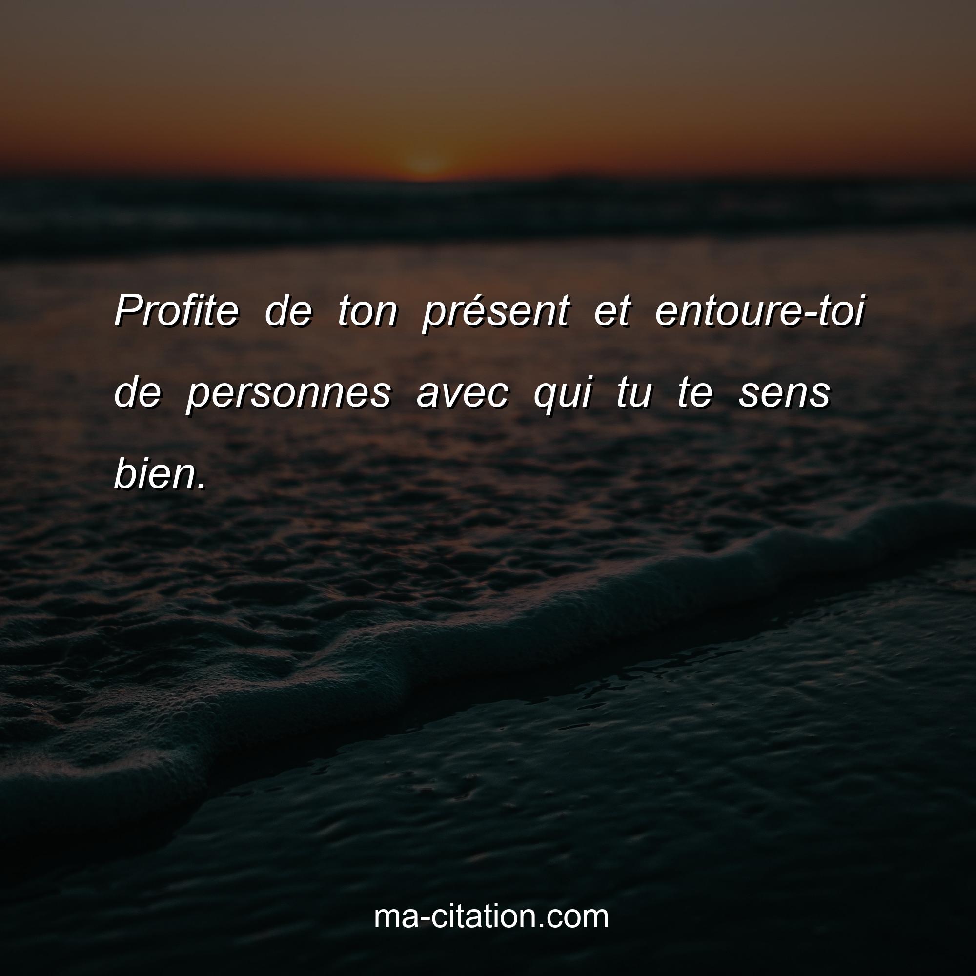 Citation sur la vie :Profite de ton présent et entoure-toi de personnes avec qui tu te sens bien.