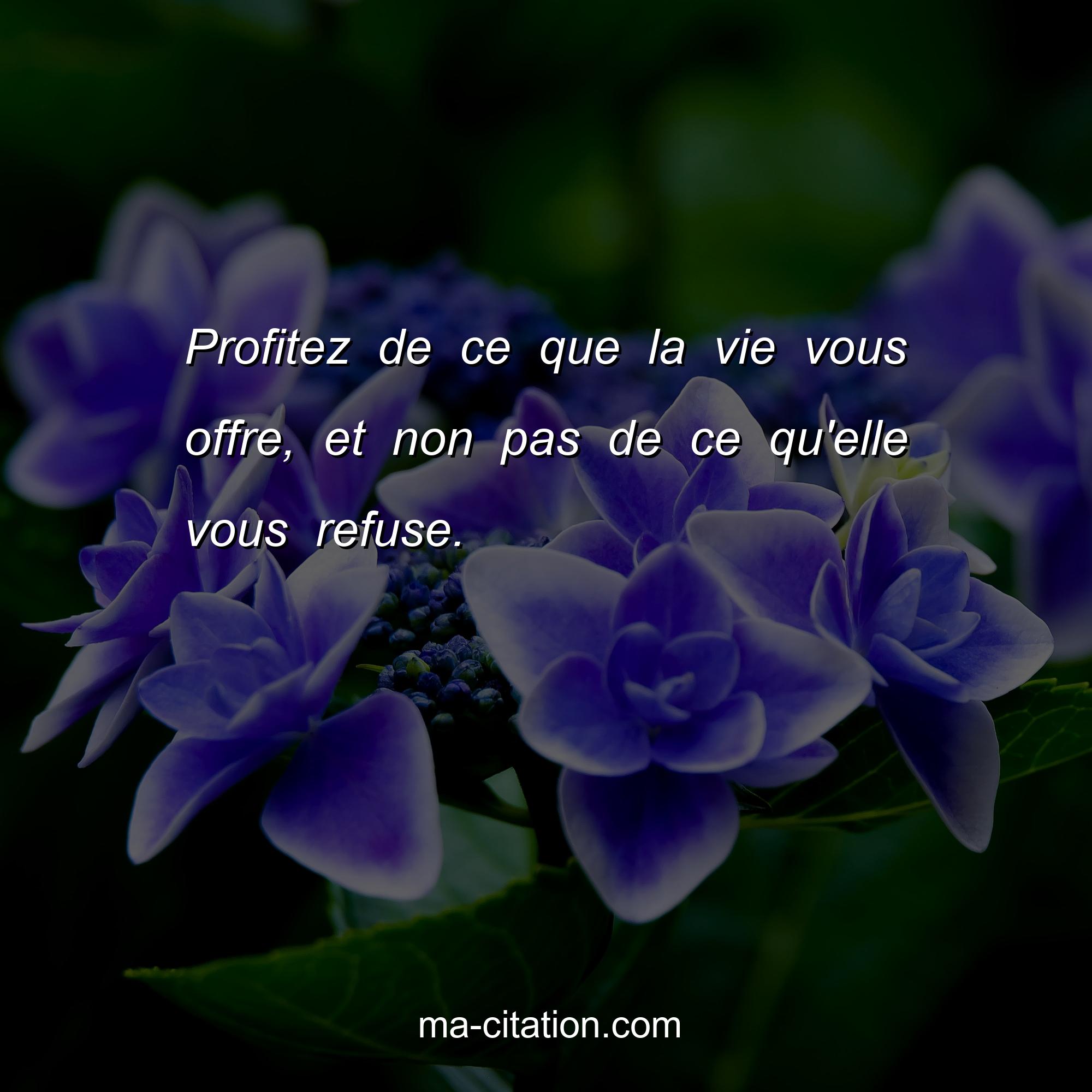 Citation sur la vie :Profitez de ce que la vie vous offre, et non pas de ce qu'elle vous refuse.