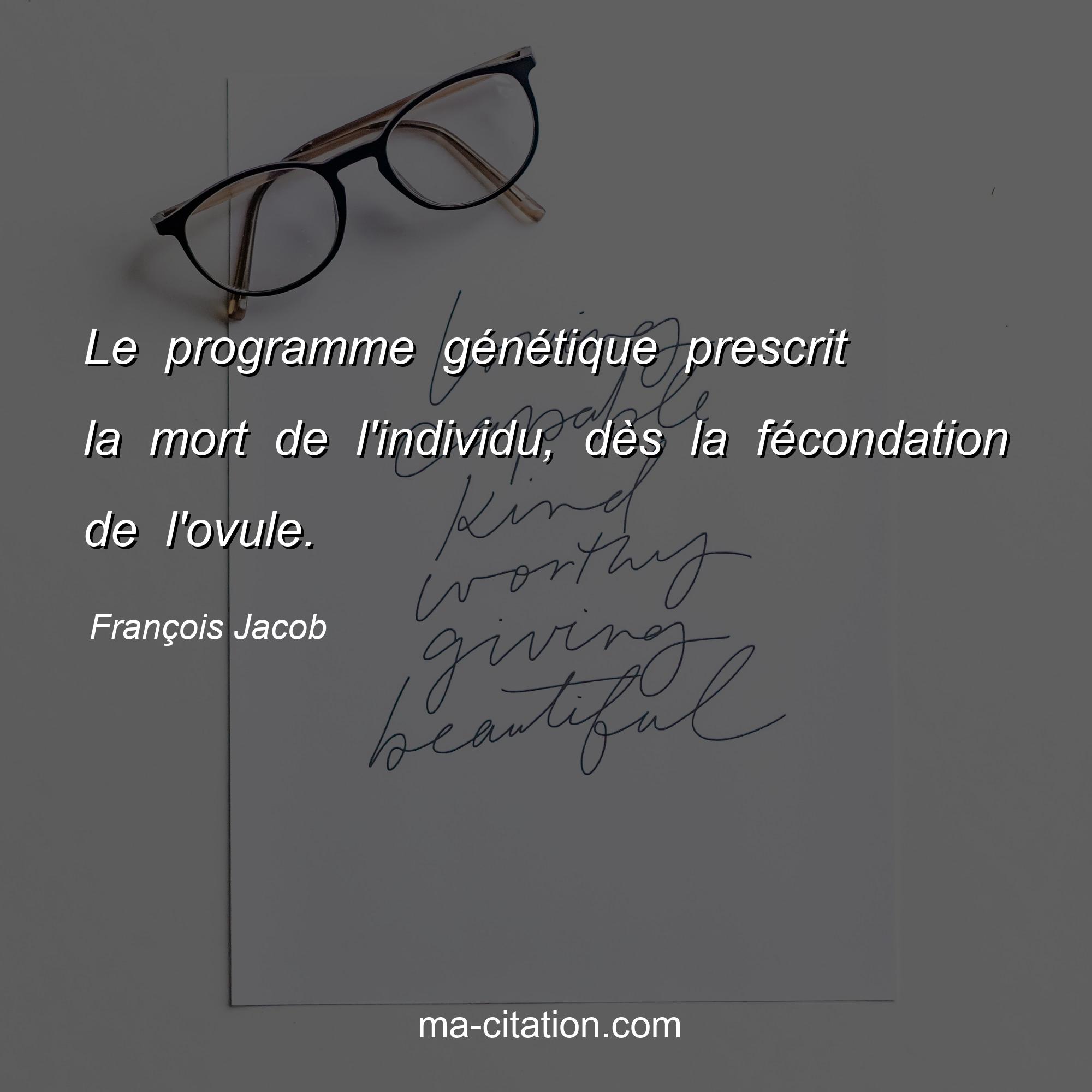 Citation sur la vie de François Jacob :Le programme génétique prescrit la mort de l'individu, dès la fécondation de l'ovule.