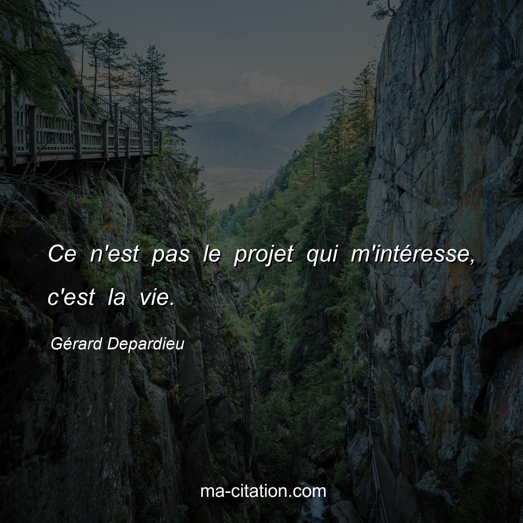 Citation sur la vie de Gérard Depardieu :Ce n'est pas le projet qui m'intéresse, c'est la vie.