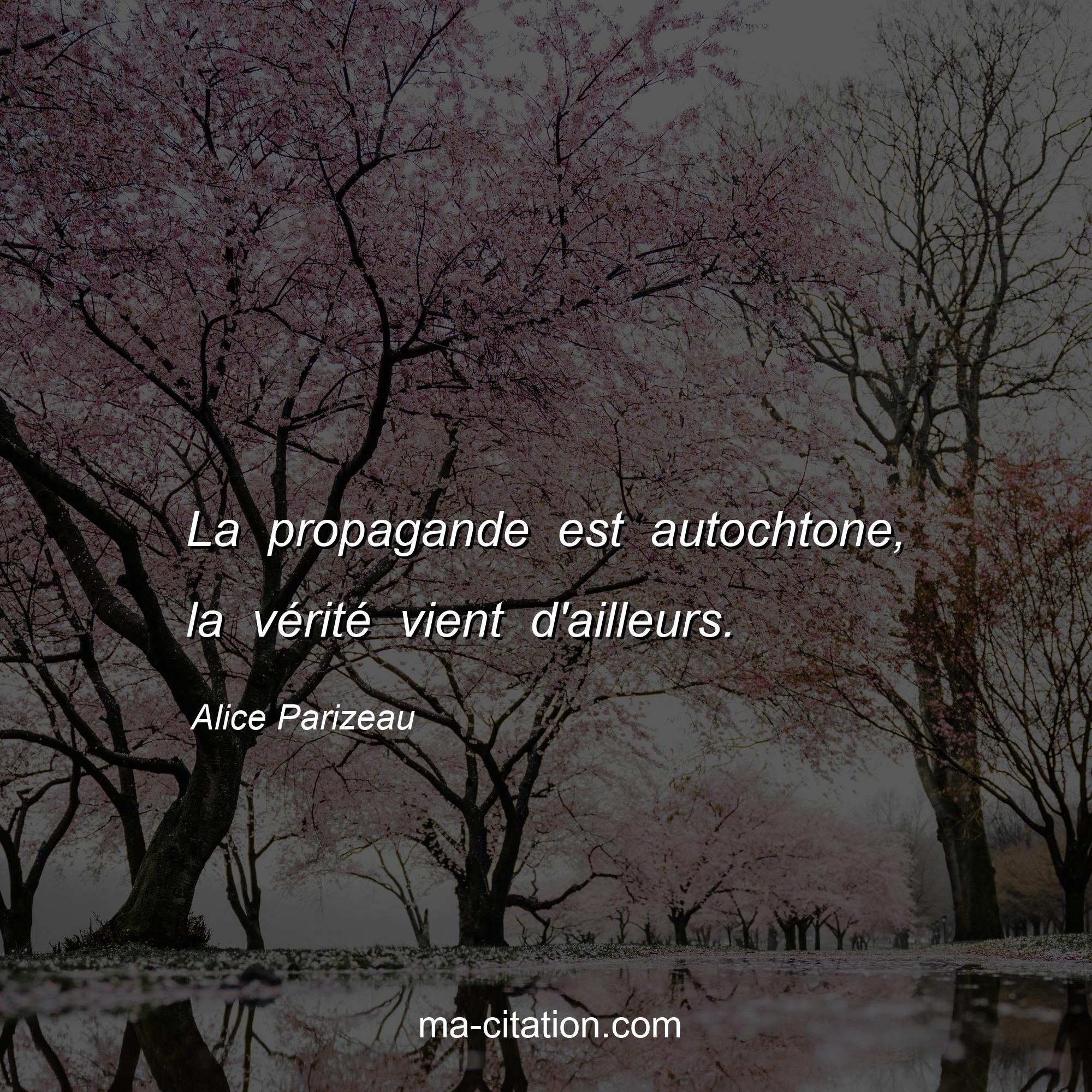 Citation sur la vie d'Alice Parizeau :La propagande est autochtone, la vérité vient d'ailleurs.