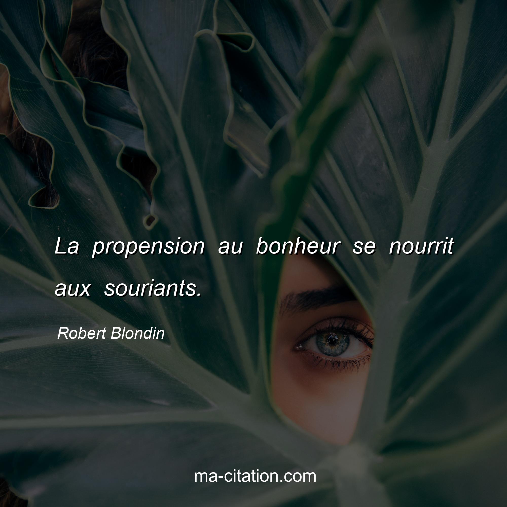 Citation sur la vie de Robert Blondin :La propension au bonheur se nourrit aux souriants.