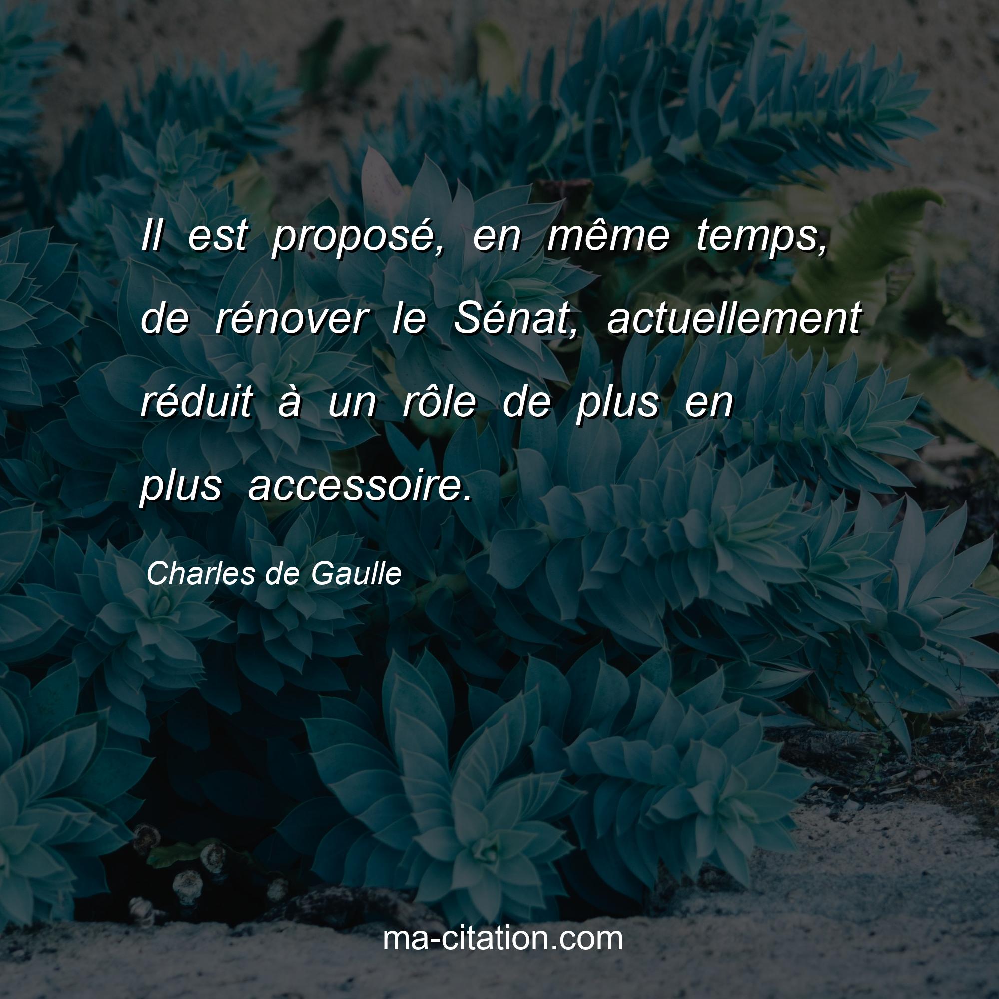 Citation sur la vie de Charles de Gaulle :Il est proposé, en même temps, de rénover le Sénat, actuellement réduit à un rôle de plus en plus accessoire.