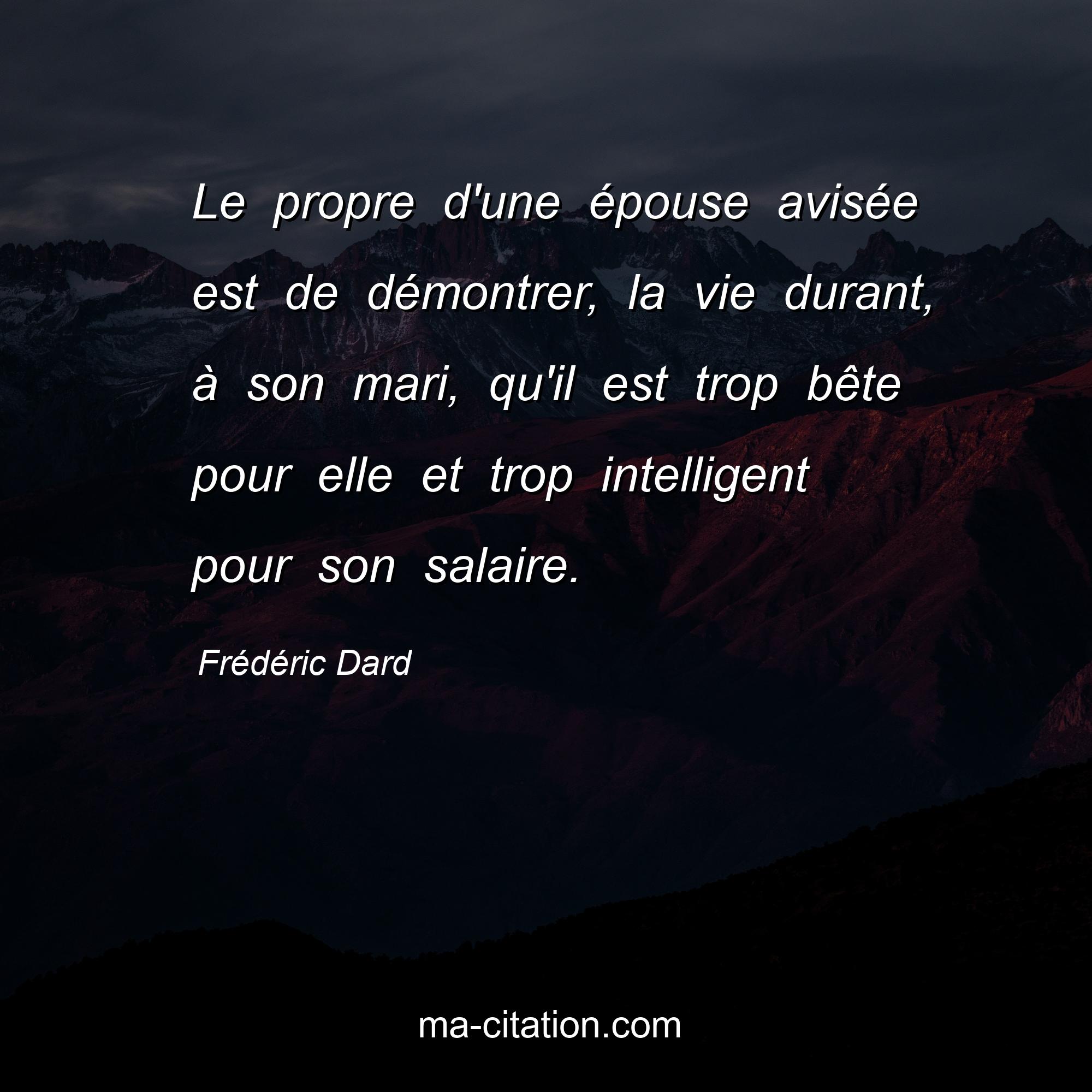 Citation sur la vie de Frédéric Dard :Le propre d'une épouse avisée est de démontrer, la vie durant, à son mari, qu'il est trop bête pour elle et trop intelligent pour son salaire.