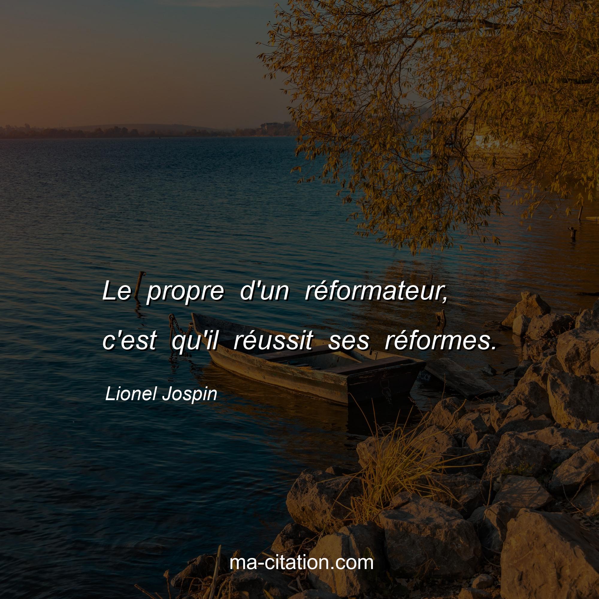 Citation sur la vie de Lionel Jospin :Le propre d'un réformateur, c'est qu'il réussit ses réformes.