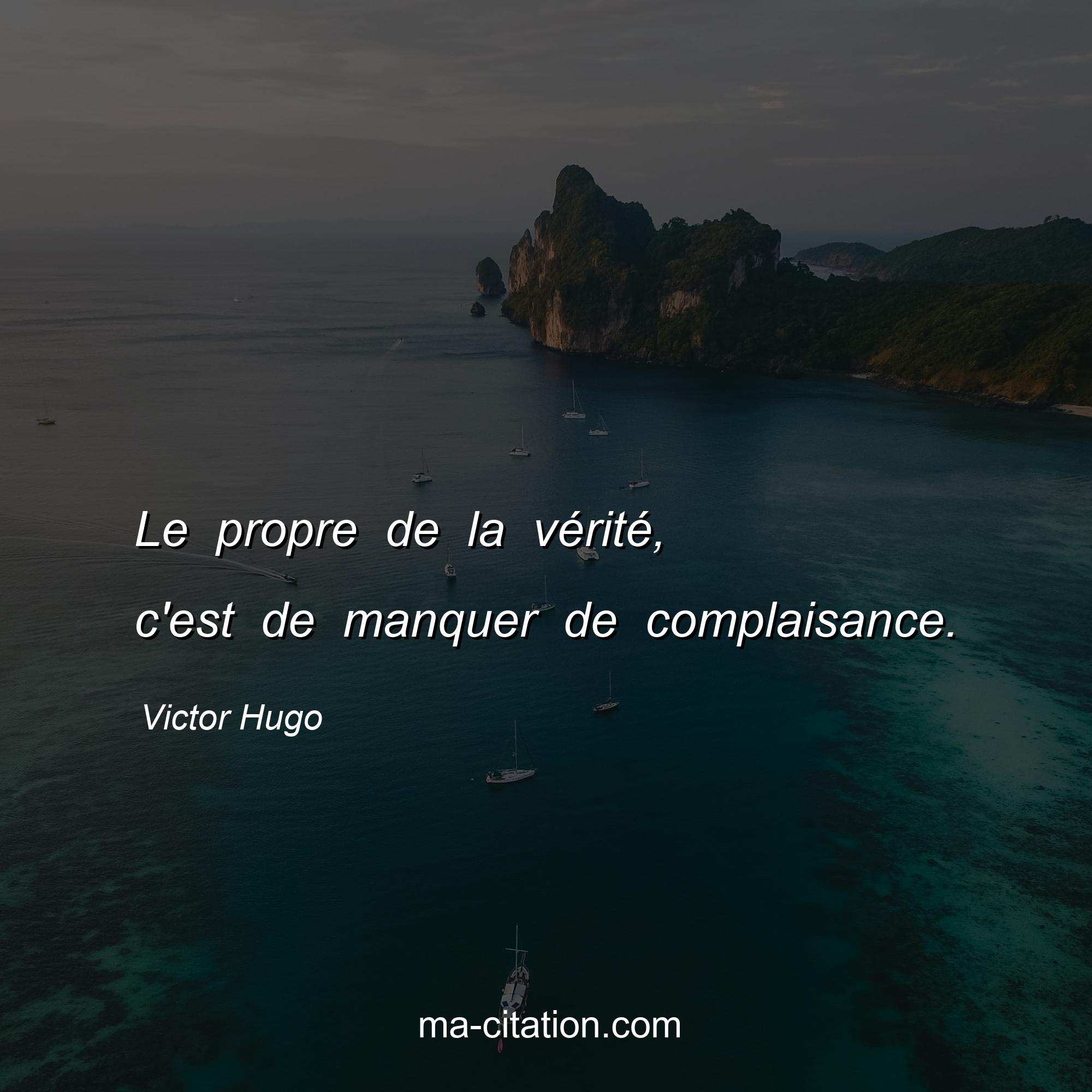 Victor Hugo : Le propre de la vérité, c'est de manquer de complaisance.