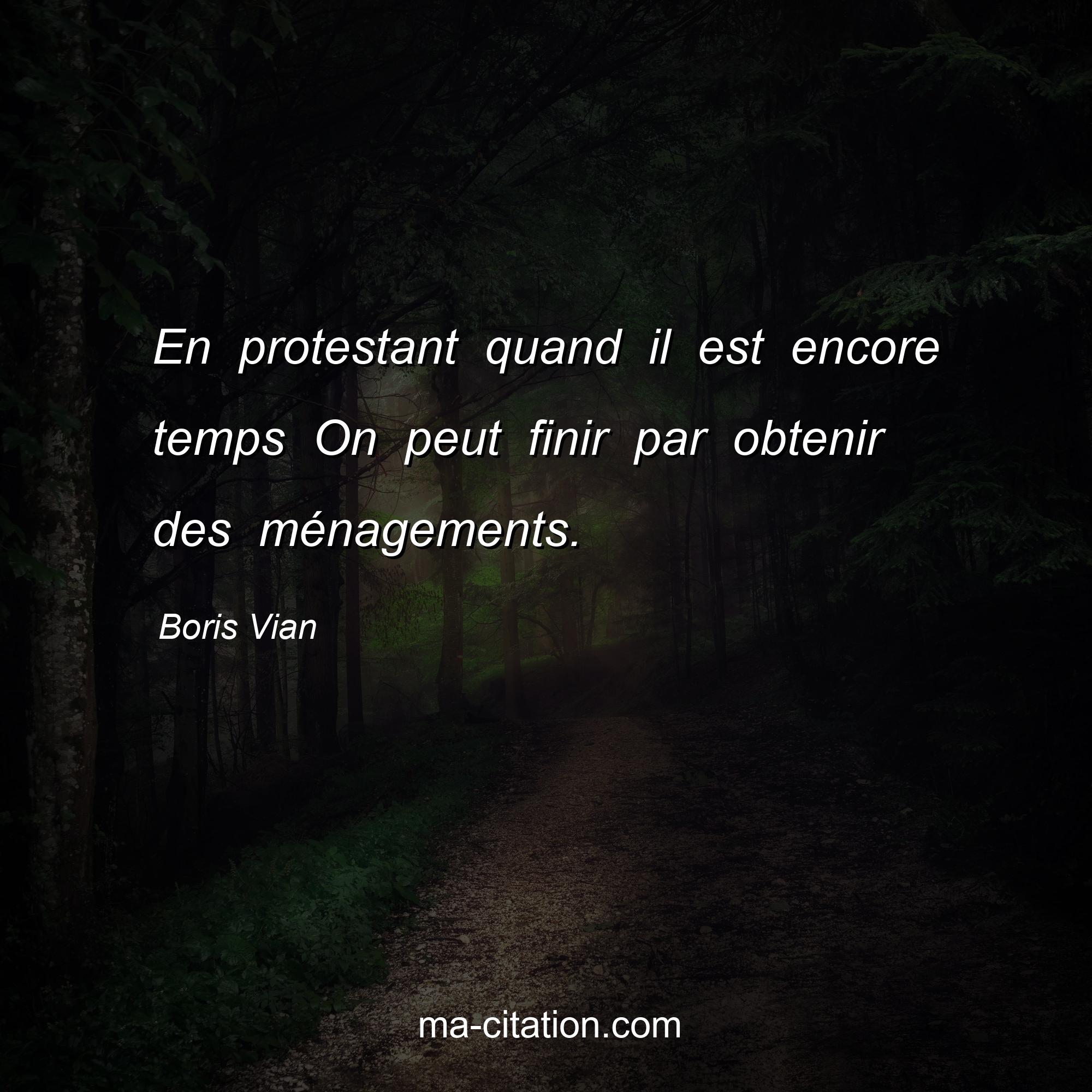 Citation sur la vie de Boris Vian :En protestant quand il est encore temps On peut finir par obtenir des ménagements.