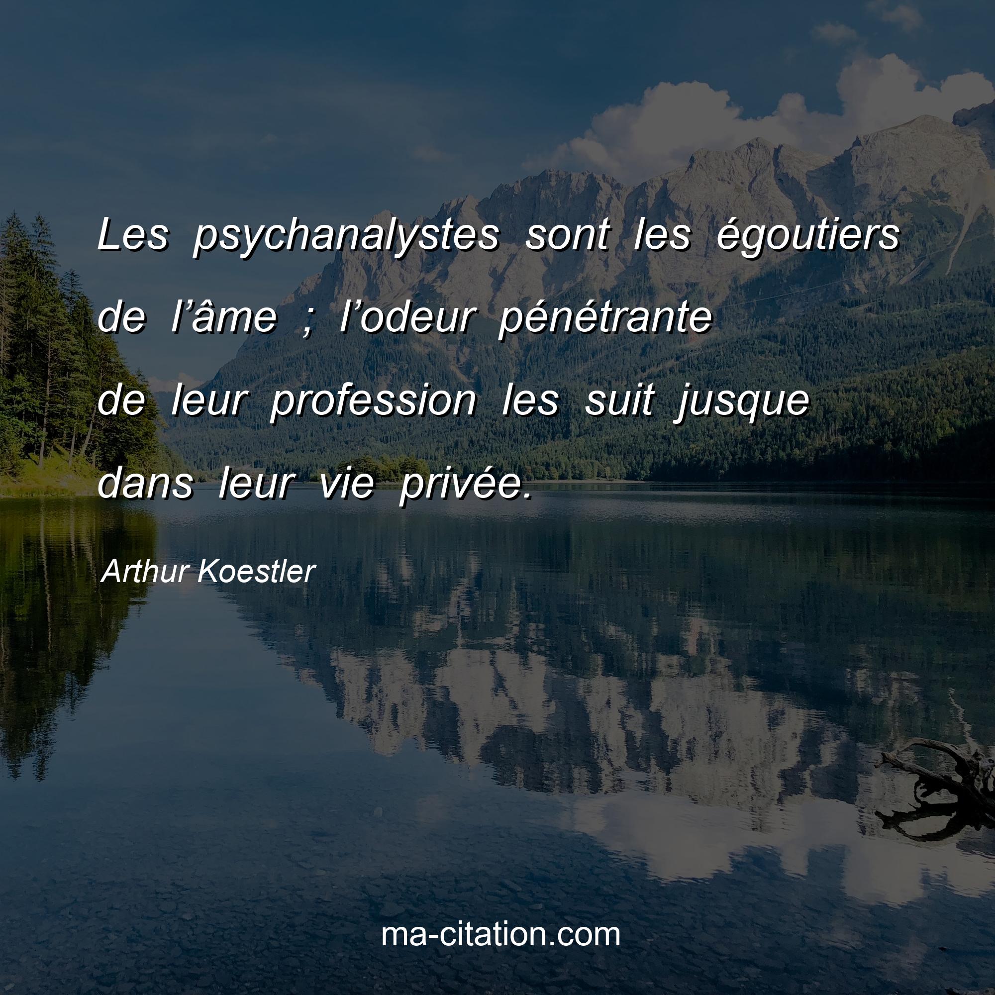 Citation sur la vie d'Arthur Koestler :Les psychanalystes sont les égoutiers de l’âme ; l’odeur pénétrante de leur profession les suit jusque dans leur vie privée.