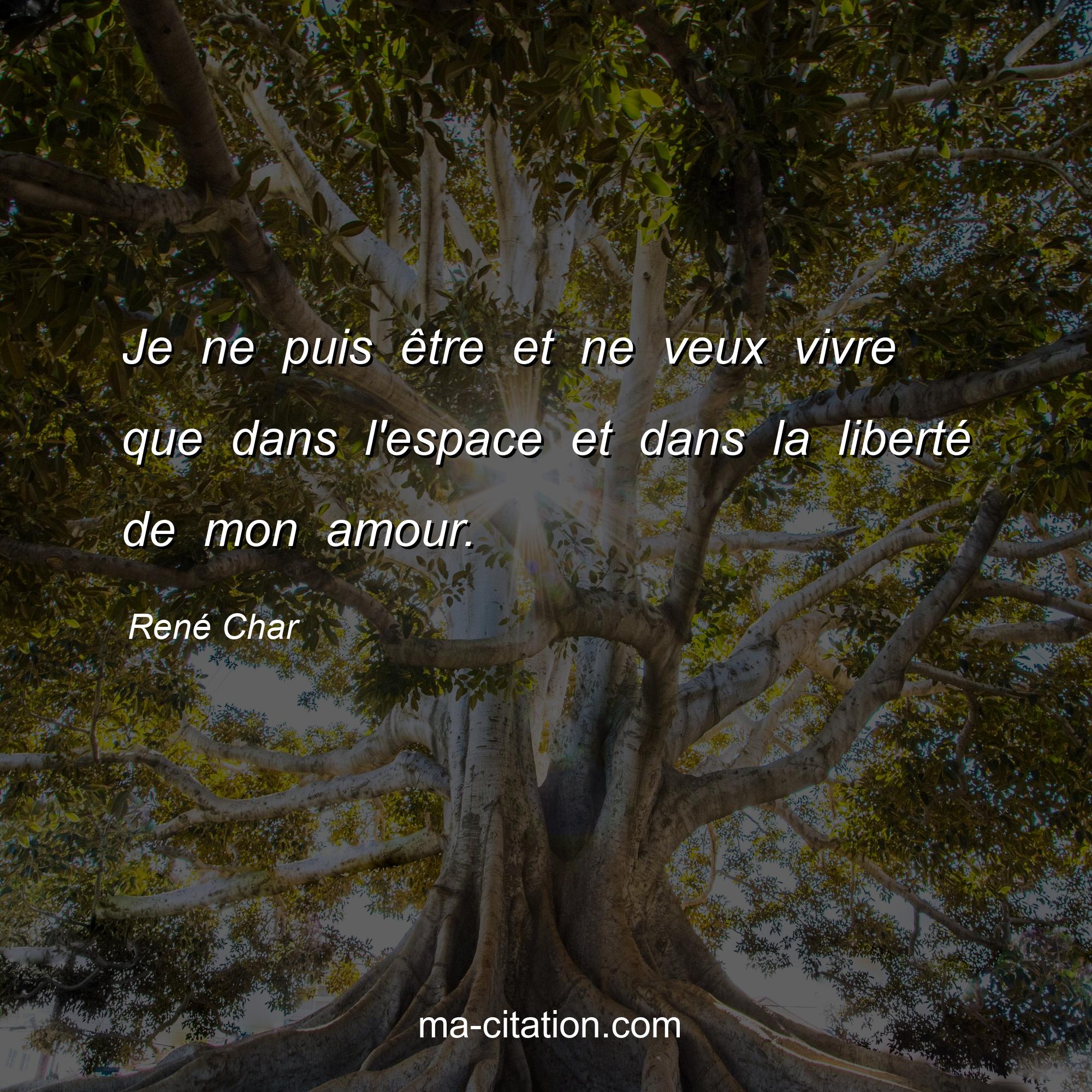 Citation sur la vie de René Char :Je ne puis être et ne veux vivre que dans l'espace et dans la liberté de mon amour.
