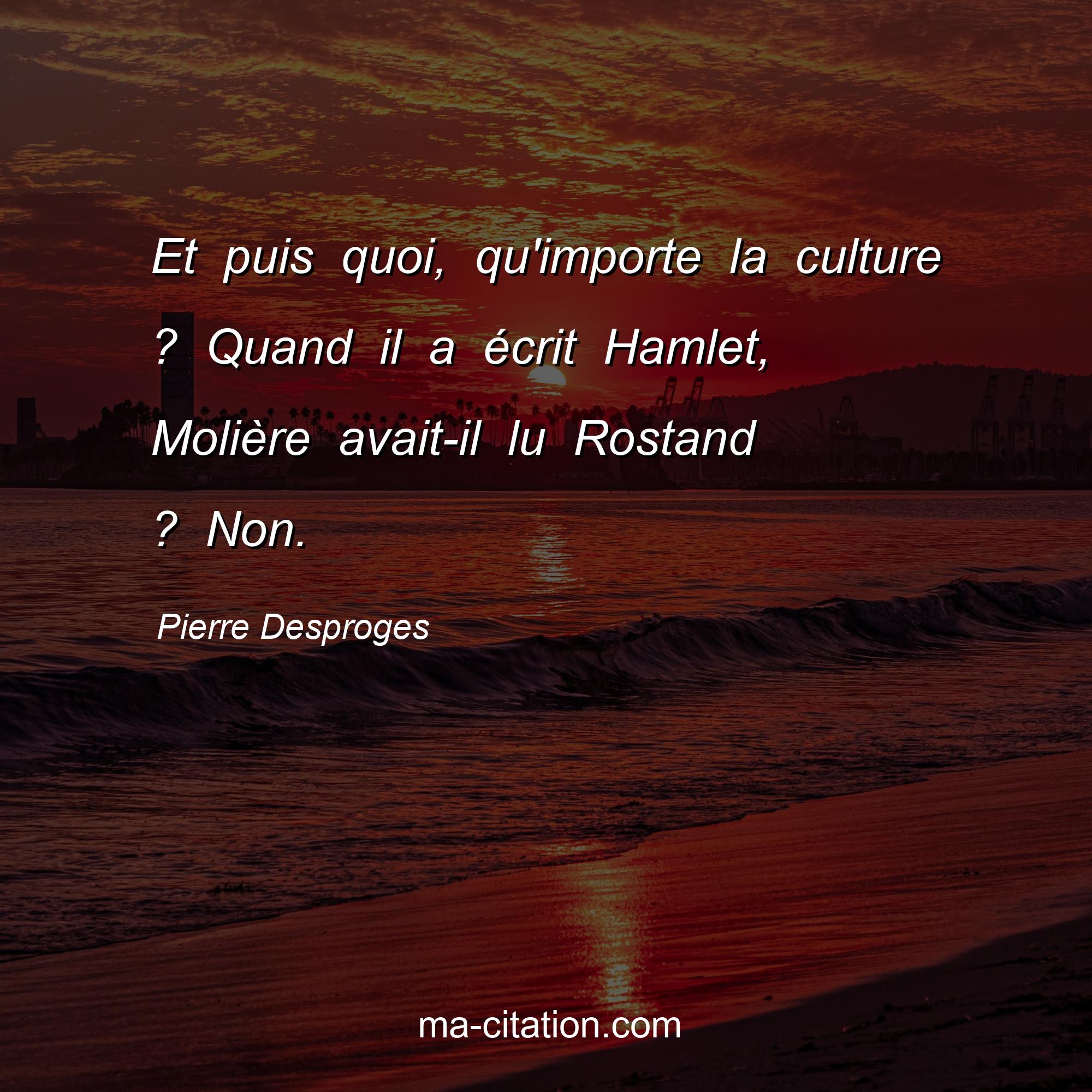 Citation sur la vie de Pierre Desproges :Et puis quoi, qu'importe la culture ? Quand il a écrit Hamlet, Molière avait-il lu Rostand ? Non.