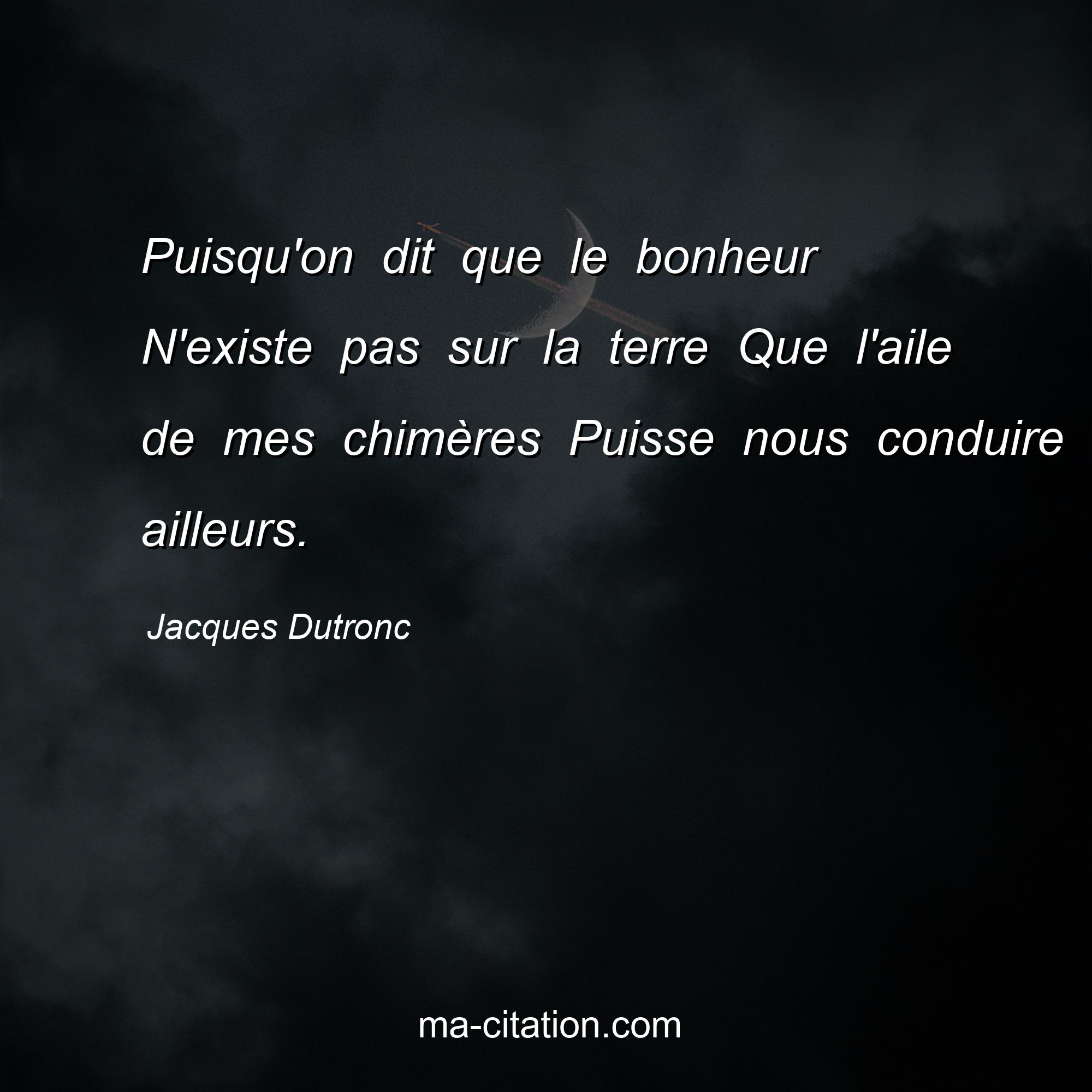 Citation sur la vie de Jacques Dutronc :Puisqu'on dit que le bonheur N'existe pas sur la terre Que l'aile de mes chimères Puisse nous conduire ailleurs.
