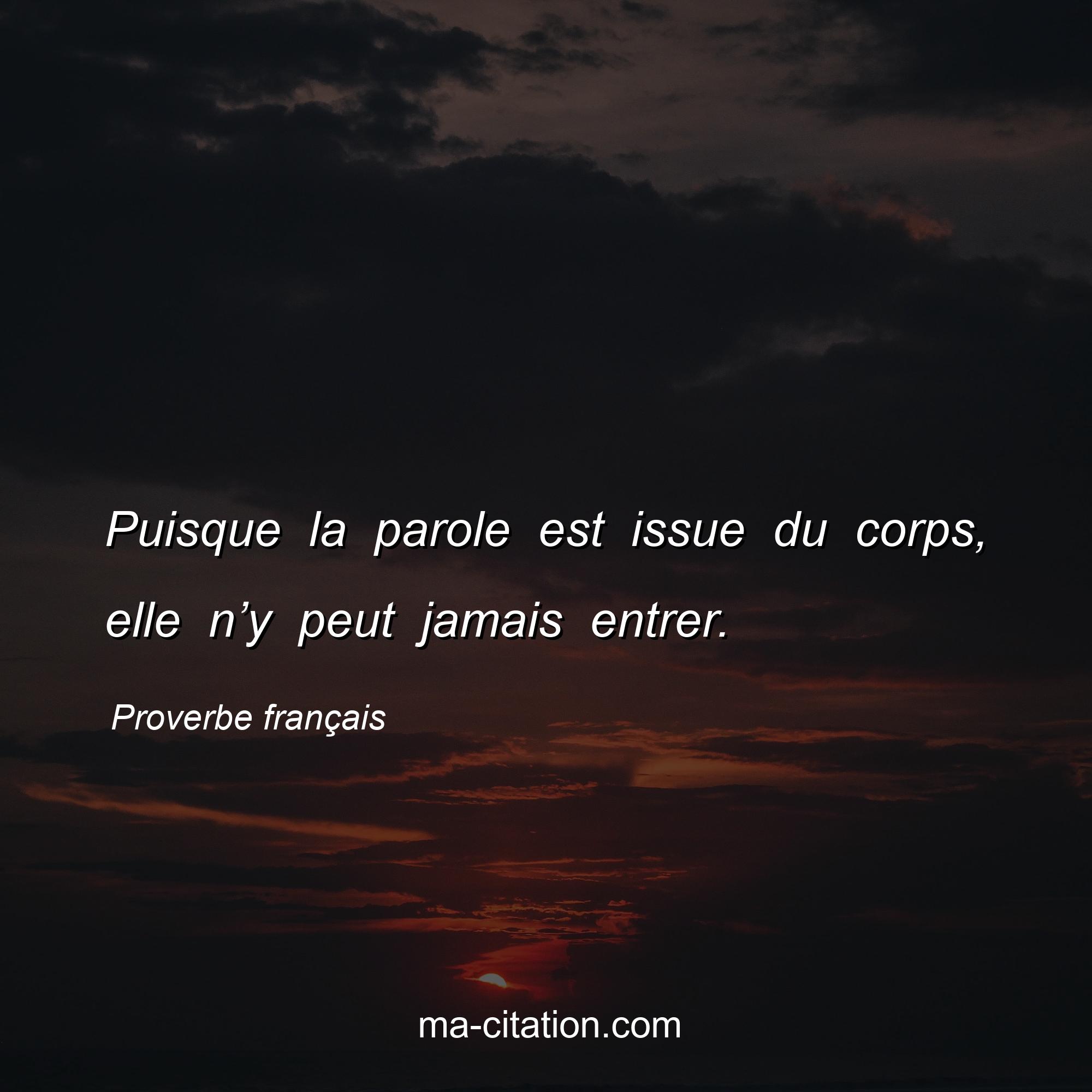 Proverbe français sur la vie :Puisque la parole est issue du corps, elle n’y peut jamais entrer.