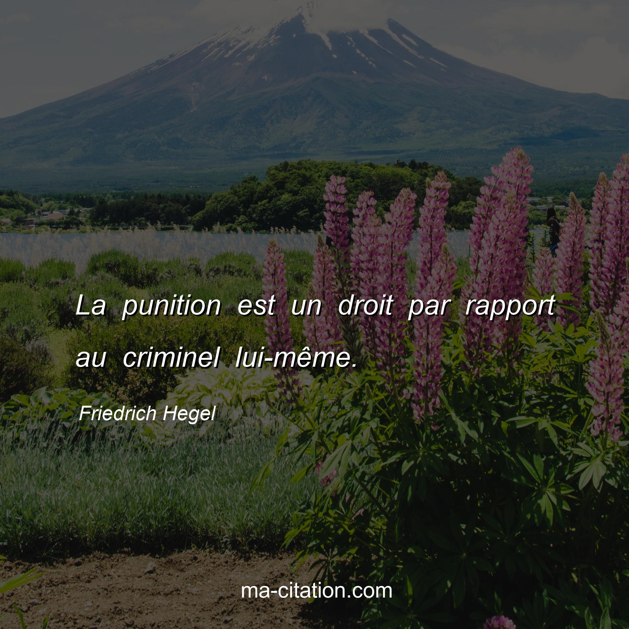 Citation sur la vie de Friedrich Hegel :La punition est un droit par rapport au criminel lui-même.