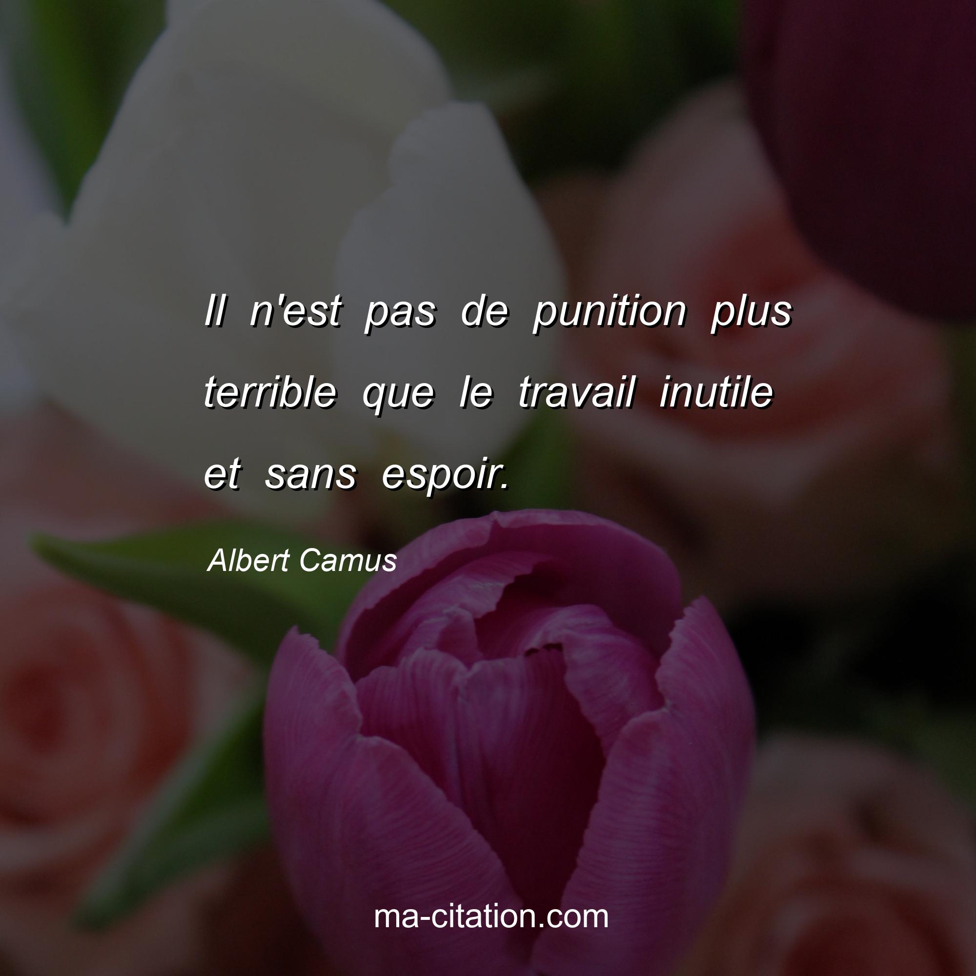 Citation sur la vie d'Albert Camus :Il n'est pas de punition plus terrible que le travail inutile et sans espoir.