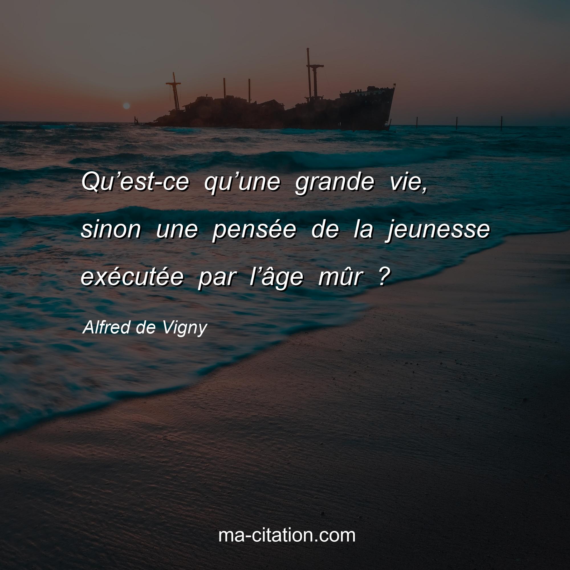Alfred de Vigny est l'auteur de la citation sur la vie "Qu’est-ce qu’une grande vie, sinon une pensée de la jeunesse exécutée par l’âge mûr ?".