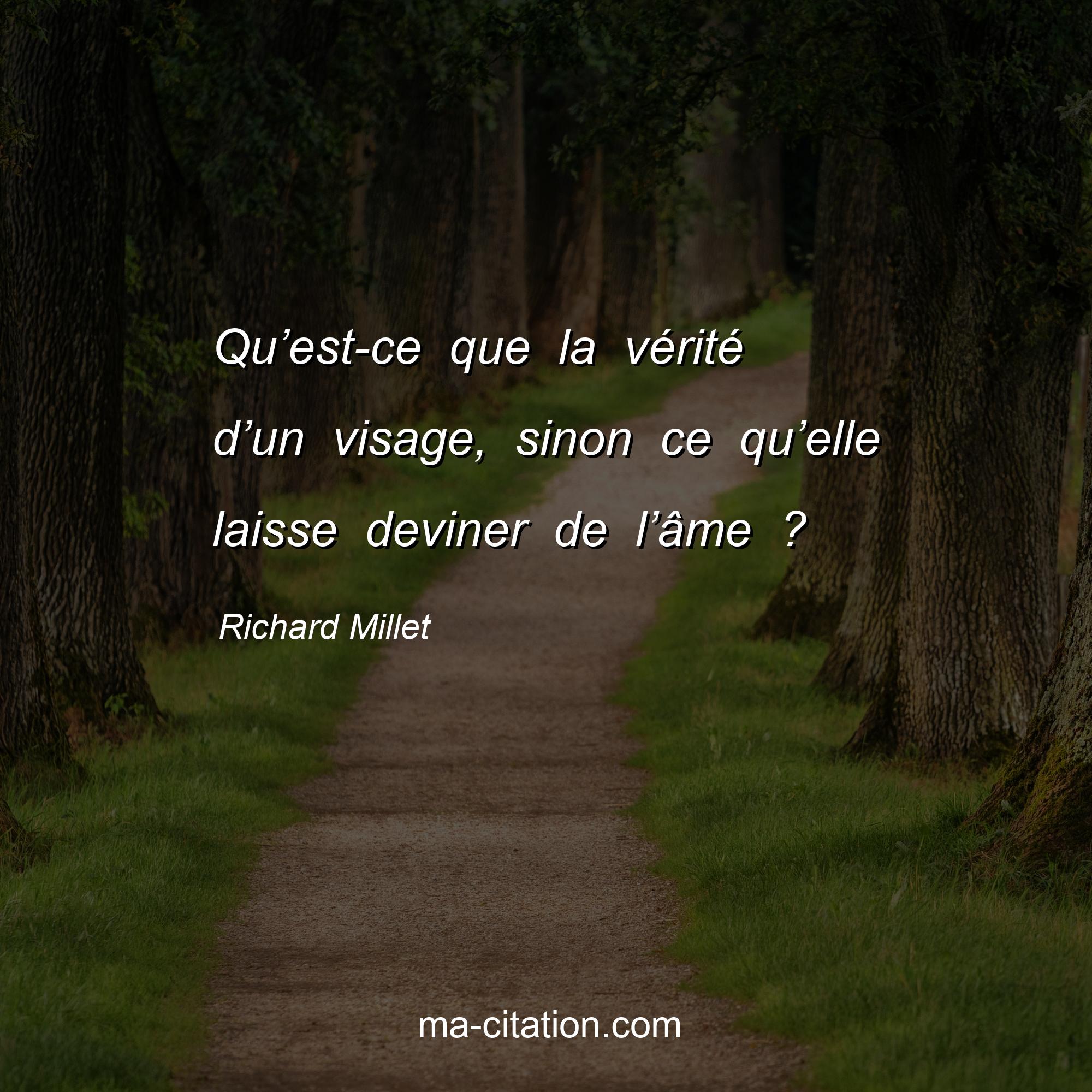 Richard Millet est l'auteur de la citation sur la vie "Qu’est-ce que la vérité d’un visage, sinon ce qu’elle laisse deviner de l’âme ?".
