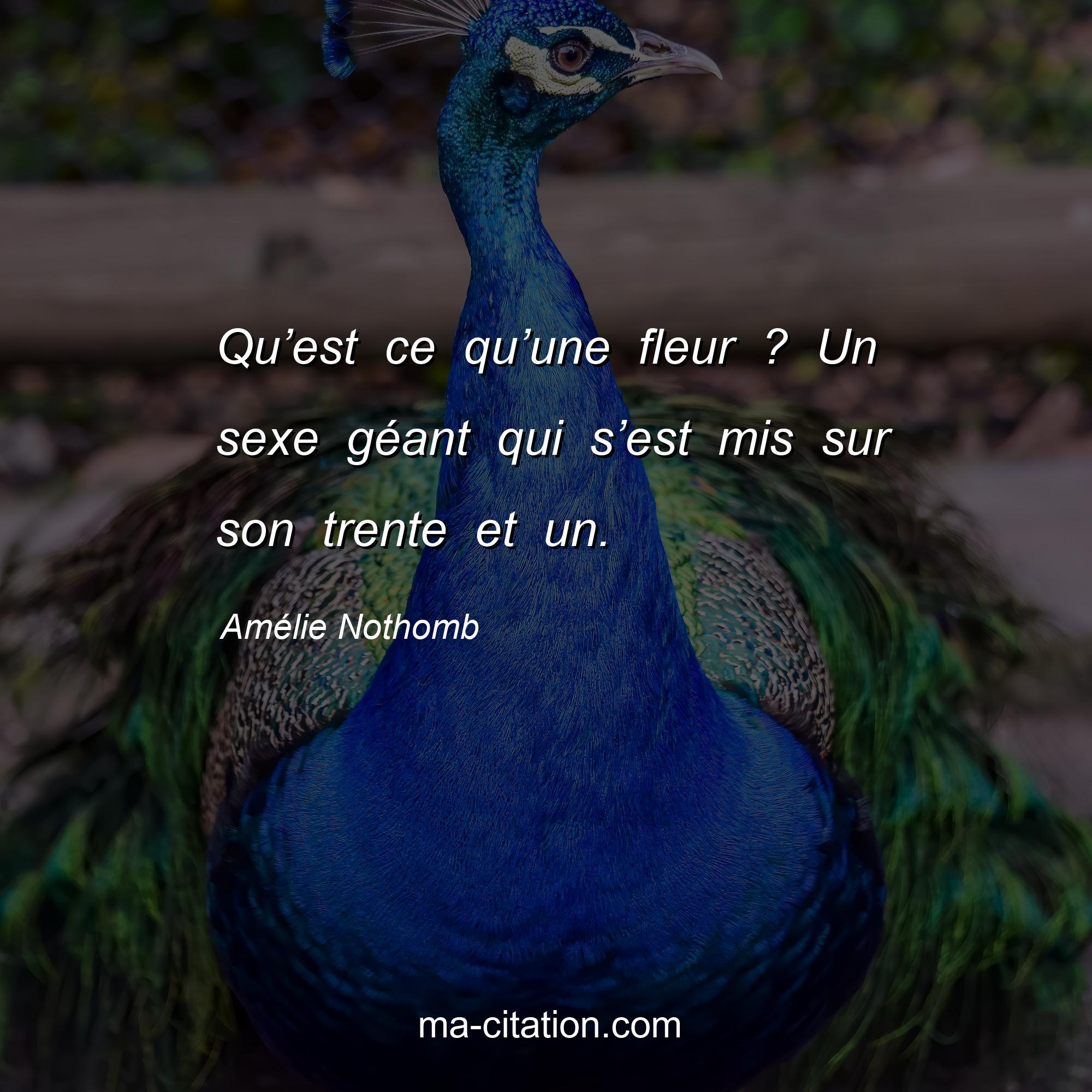 Citation sur la vie d'Amélie Nothomb :Qu’est ce qu’une fleur ? Un sexe géant qui s’est mis sur son trente et un.