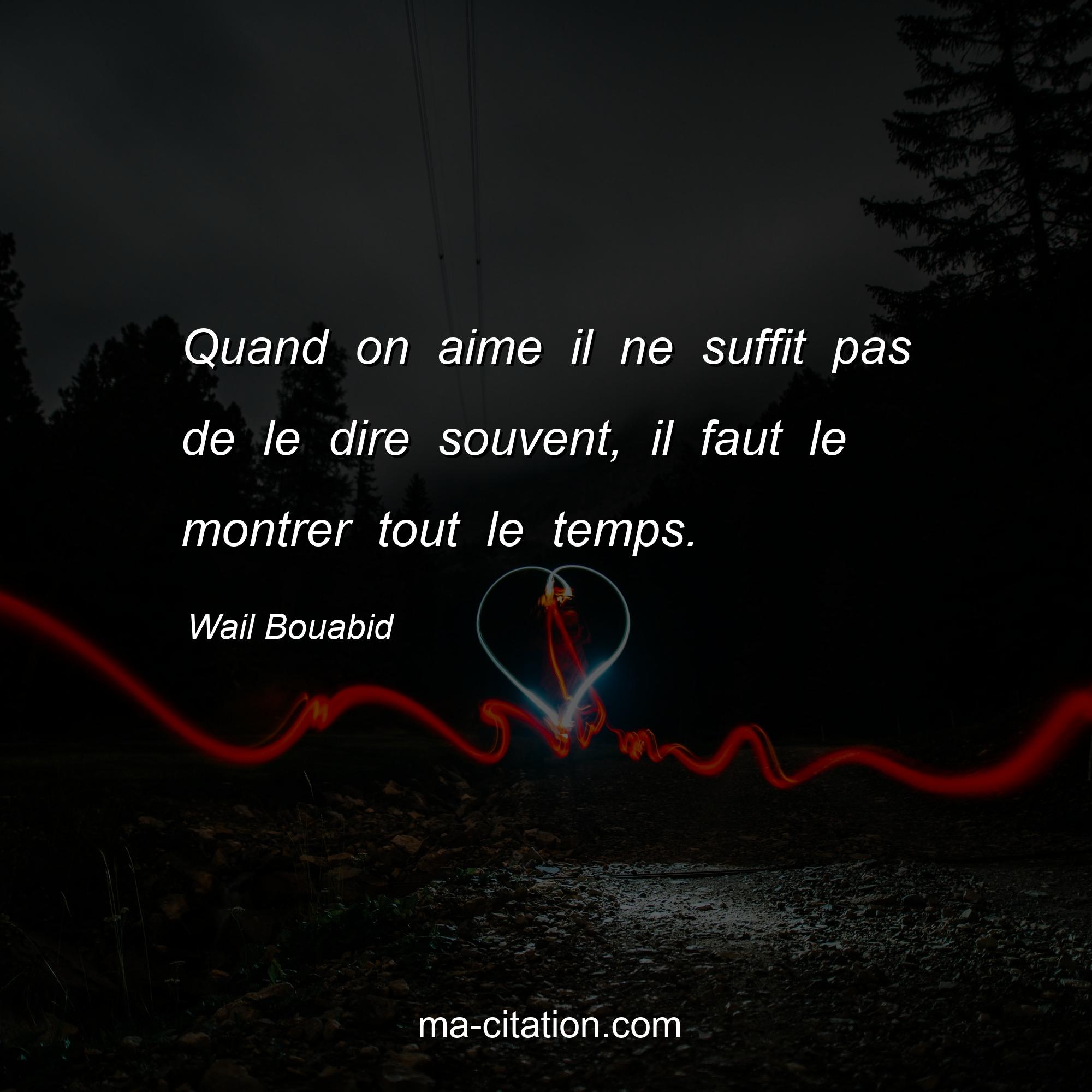 Wail Bouabid est l'auteur de la citation sur la vie "Quand on aime il ne suffit pas de le dire souvent, il faut le montrer tout le temps.".