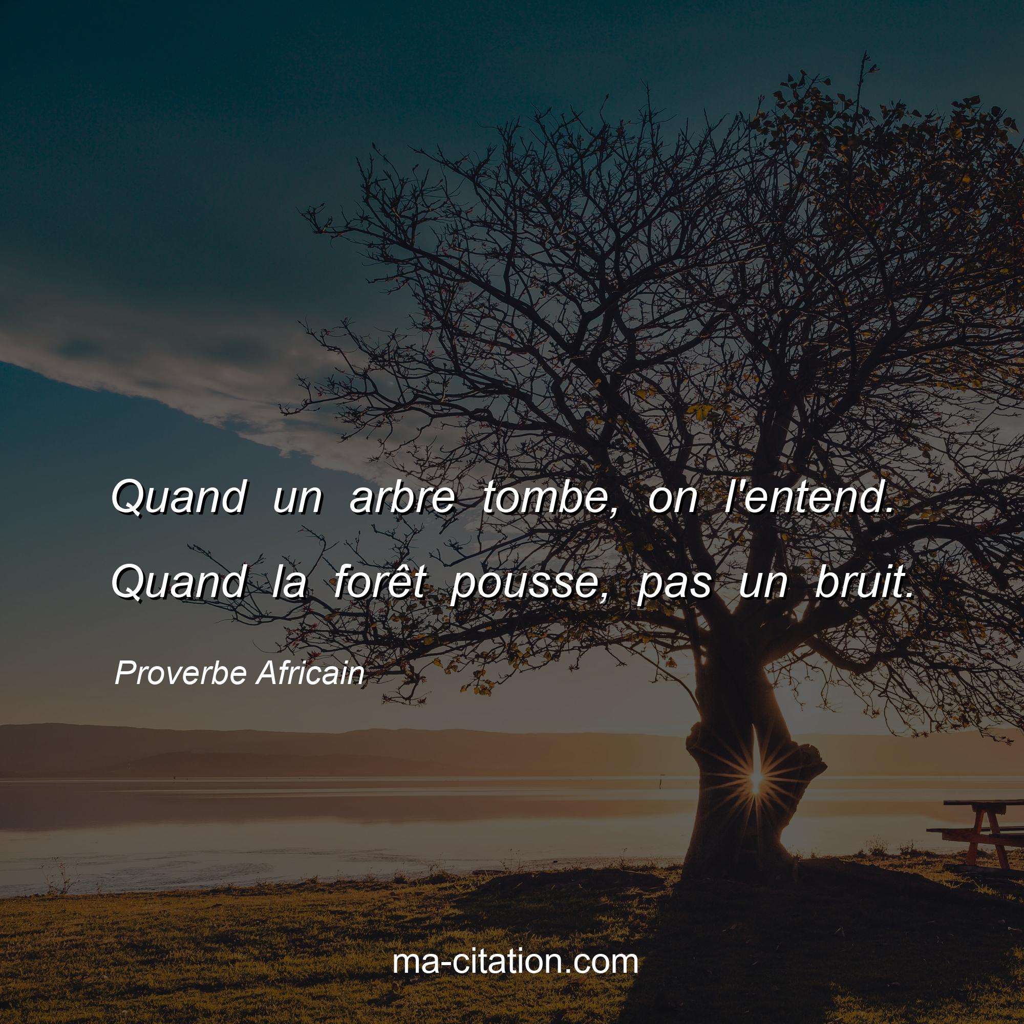 Proverbe Africain sur la vie :Quand un arbre tombe, on l'entend. Quand la forêt pousse, pas un bruit.