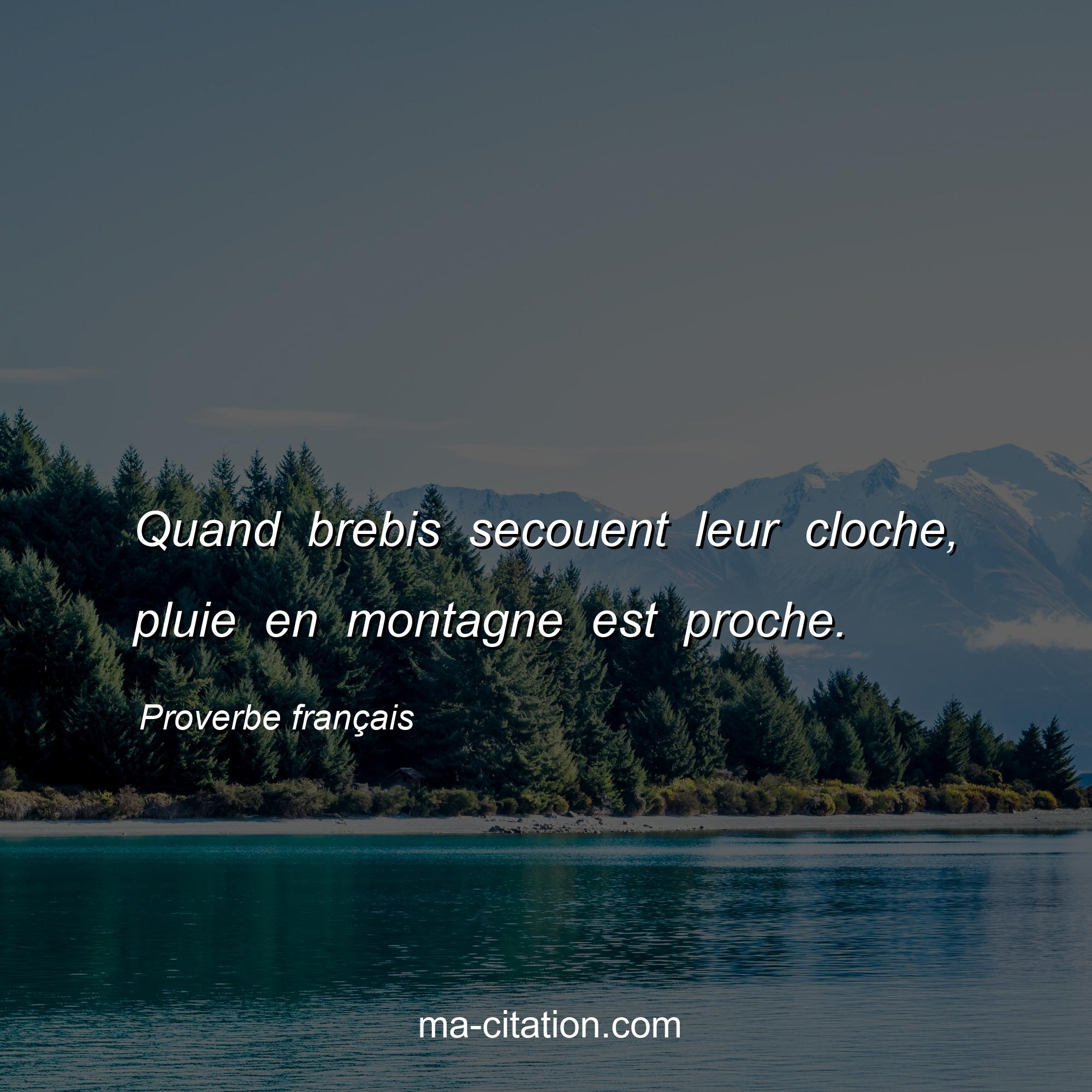 Proverbe français sur la vie :Quand brebis secouent leur cloche, pluie en montagne est proche.