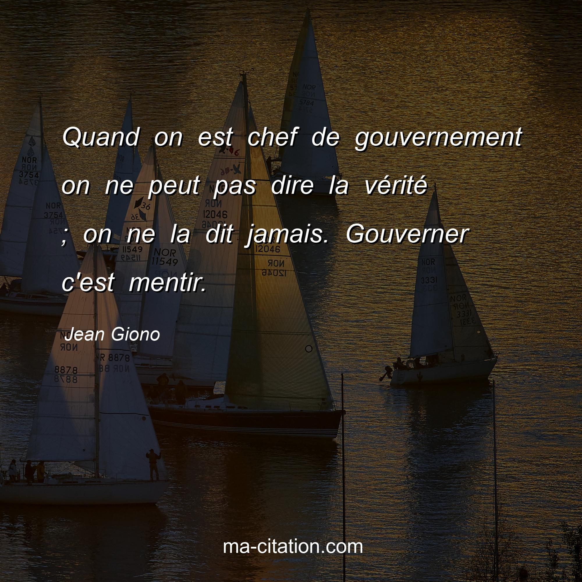 Citation sur la vie de Jean Giono :Quand on est chef de gouvernement on ne peut pas dire la vérité ; on ne la dit jamais. Gouverner c'est mentir.