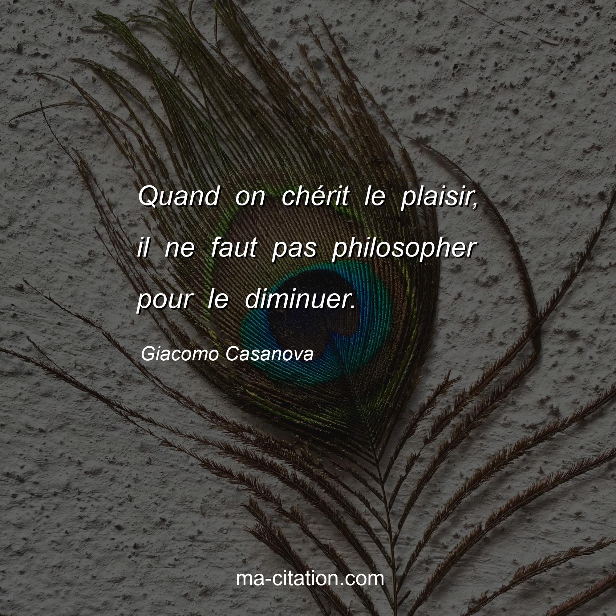 Citation sur la vie de Giacomo Casanova :Quand on chérit le plaisir, il ne faut pas philosopher pour le diminuer.