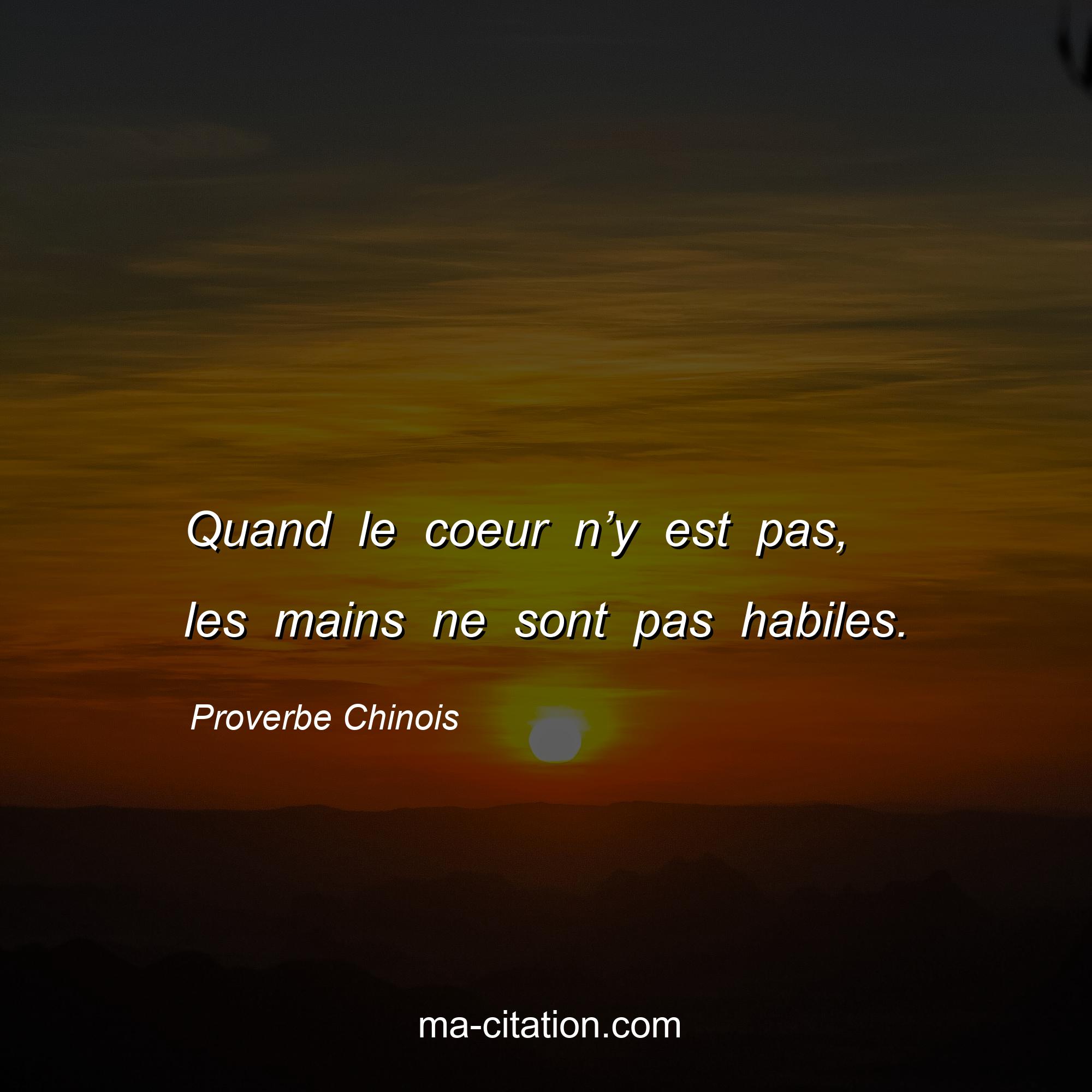 Proverbe Chinois sur la vie :Quand le coeur n’y est pas, les mains ne sont pas habiles.
