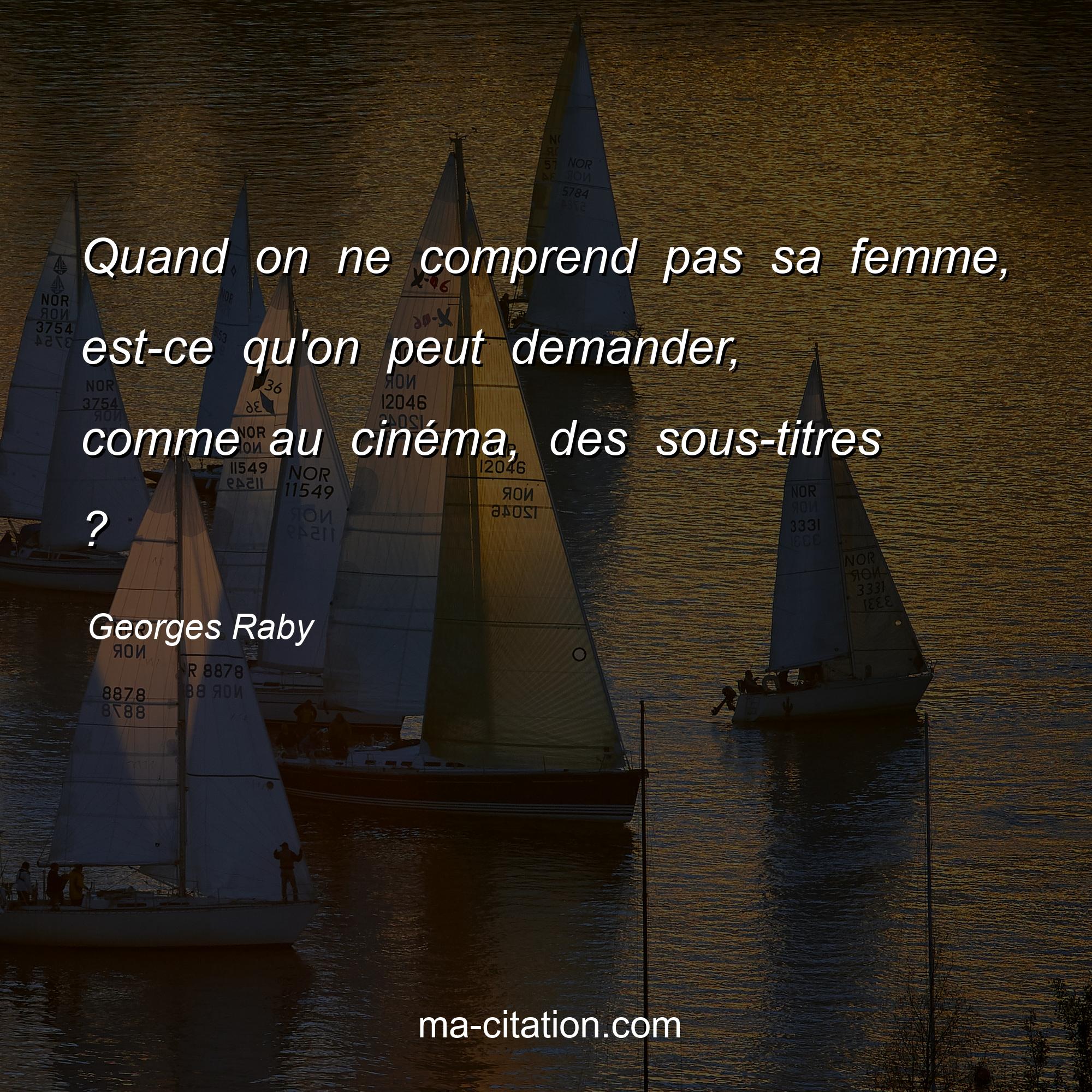 Citation sur la vie de Georges Raby :Quand on ne comprend pas sa femme, est-ce qu'on peut demander, comme au cinéma, des sous-titres ?