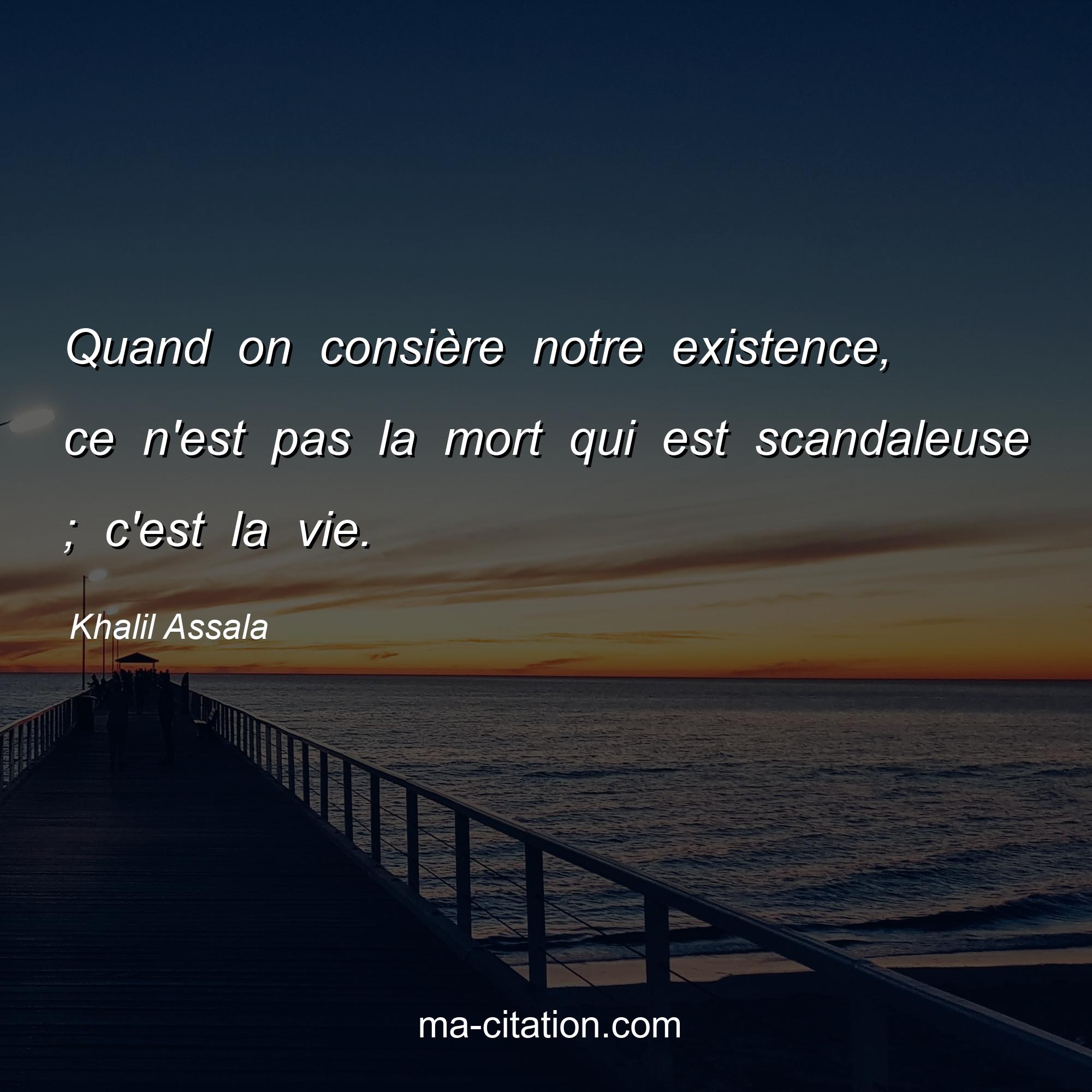Citation sur la vie de Khalil Assala :Quand on consière notre existence, ce n'est pas la mort qui est scandaleuse ; c'est la vie.