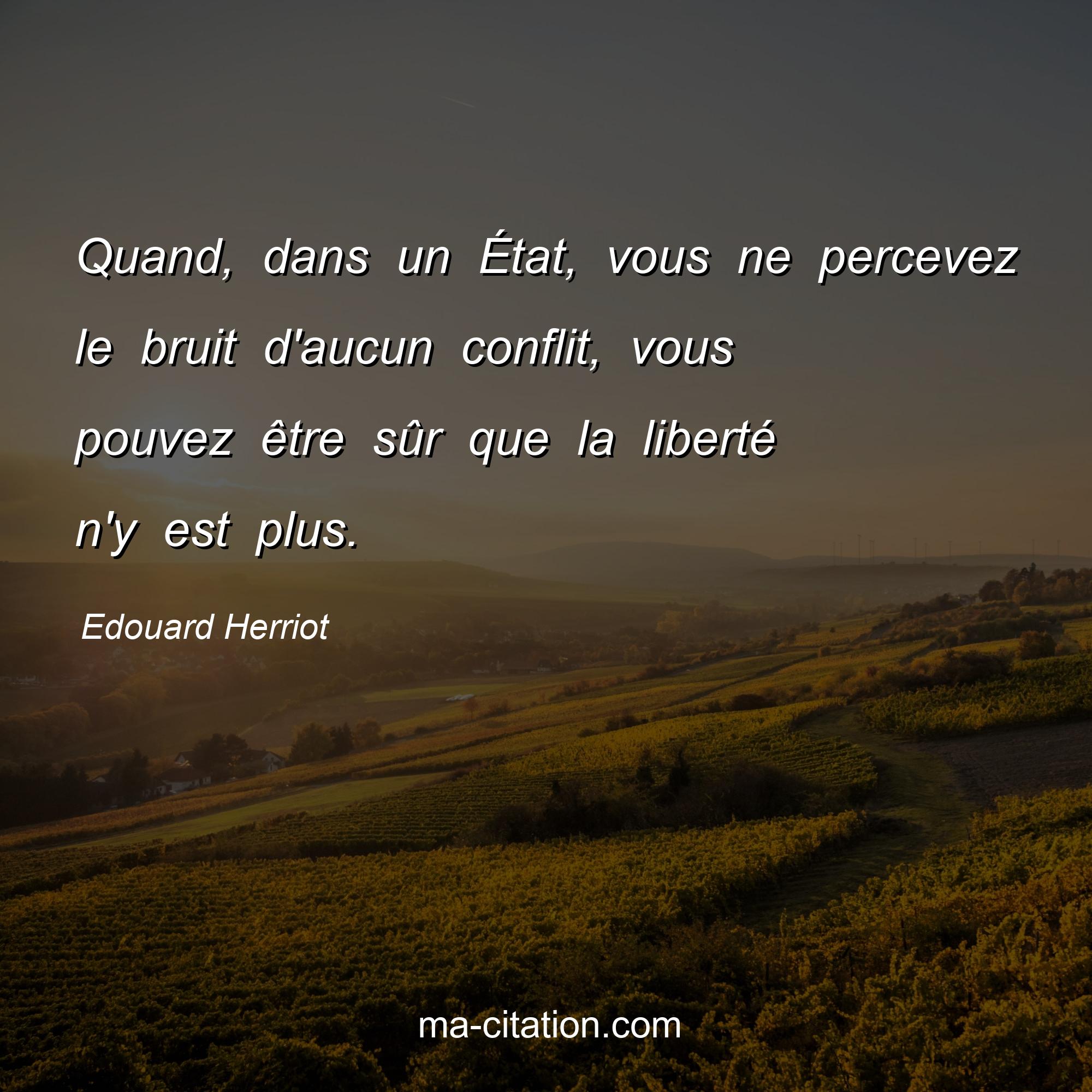 Citation sur la vie d'Edouard Herriot :Quand, dans un État, vous ne percevez le bruit d'aucun conflit, vous pouvez être sûr que la liberté n'y est plus.