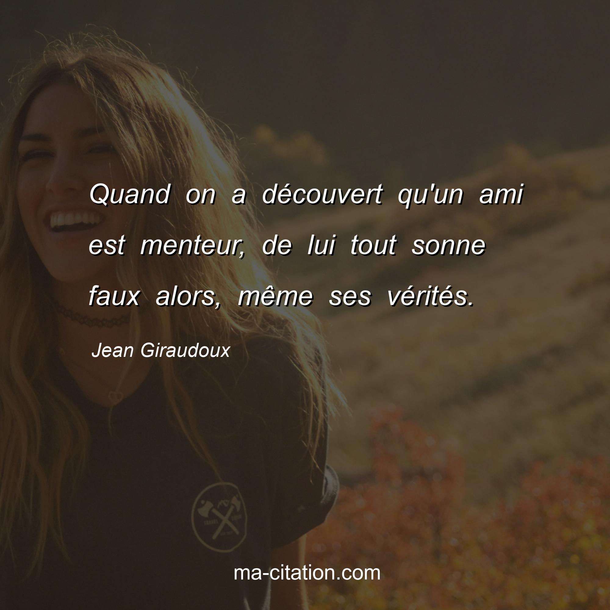 Citation sur la vie de Jean Giraudoux :Quand on a découvert qu'un ami est menteur, de lui tout sonne faux alors, même ses vérités.