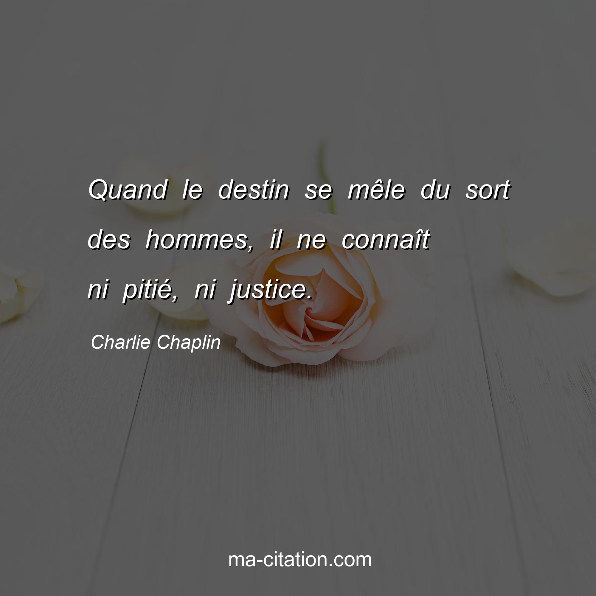 Citation sur la vie de Charlie Chaplin :Quand le destin se mêle du sort des hommes, il ne connaît ni pitié, ni justice.