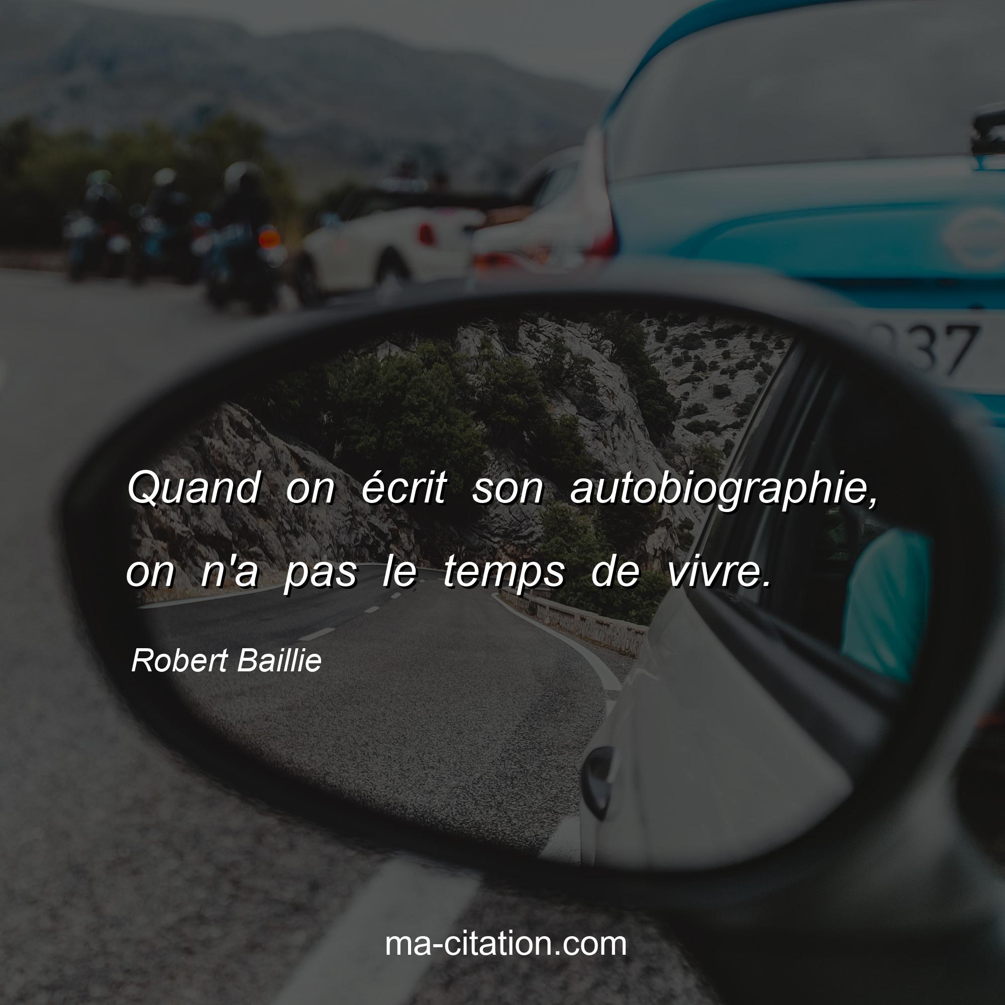 Citation sur la vie de Robert Baillie :Quand on écrit son autobiographie, on n'a pas le temps de vivre.