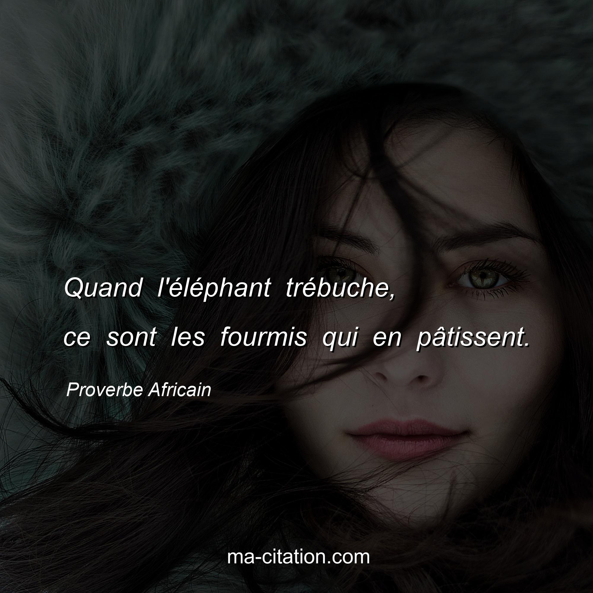 Proverbe Africain sur la vie :Quand l'éléphant trébuche, ce sont les fourmis qui en pâtissent.